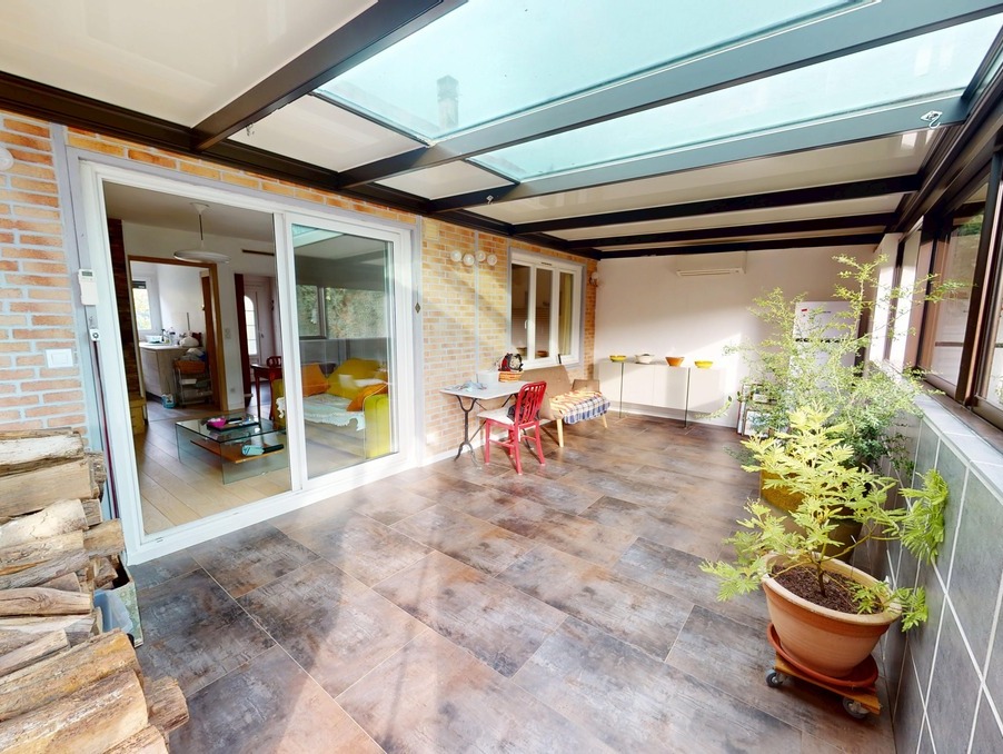 Au rez-de-chaussée, une entrée, une véranda spacieuse, une superbe cuisine aménagée et équipée, un salon, deux chambres, un grand dégagement pouvant faire office de bureau, une salle d'eau et un W.C séparé.