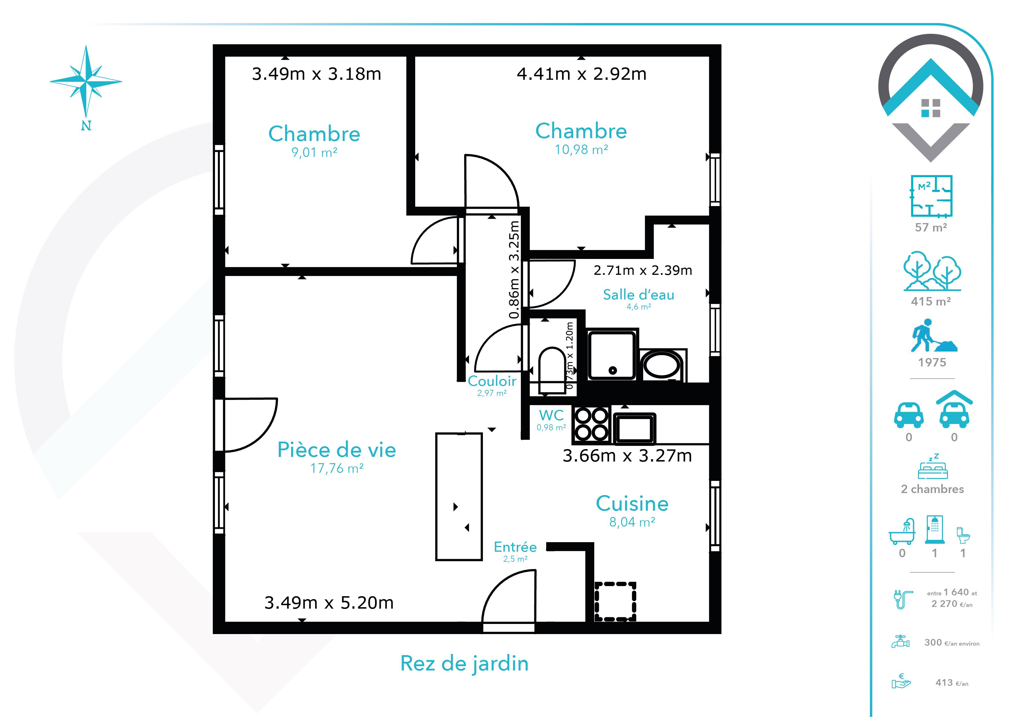 Un jardin clos de 415 m² vous permettra de profiter des beaux jours.
