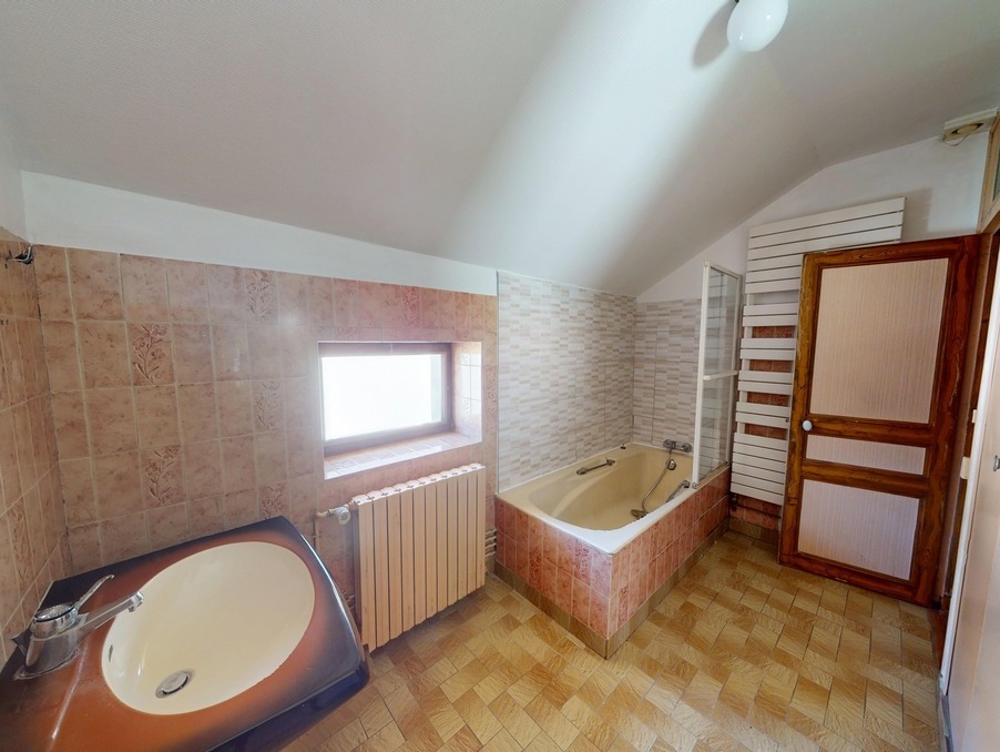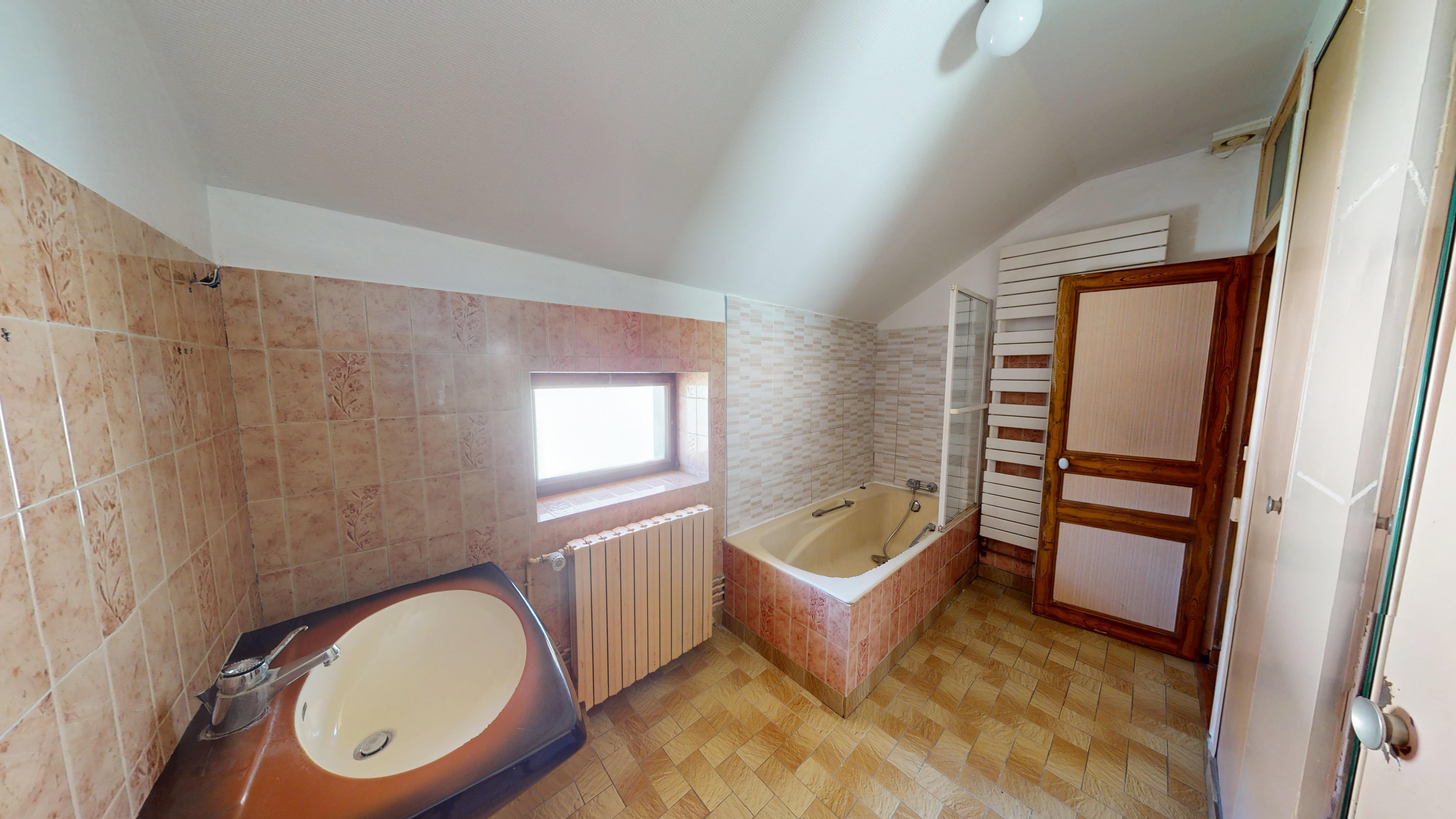 A l'étage, un palier desservant trois grandes chambres, une salle de bains, un WC séparé, un rangement et une chaufferie.