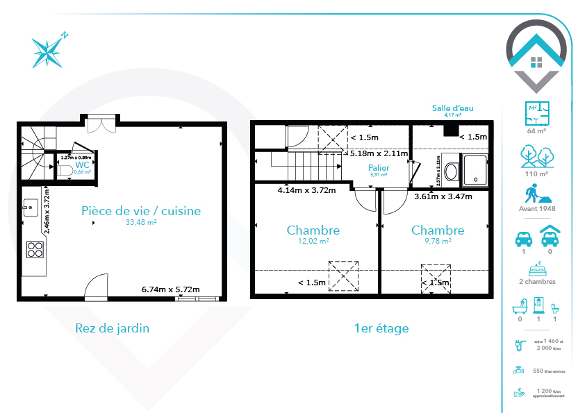 Dans une petite copropriété entretenue, venez découvrir ce duplex en excellent état de 3 pièces réparties sur 64,02 m².