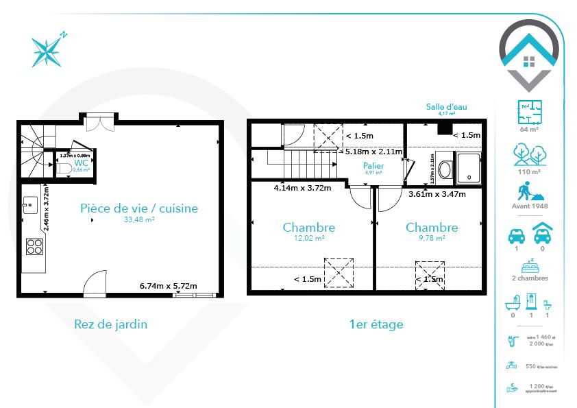 Un jardin privatif de 110 m² environ vous permettra de profiter des beaux jours.