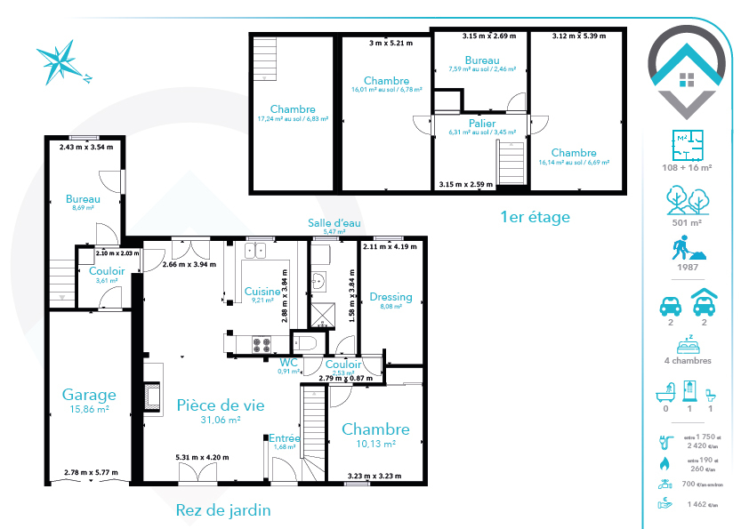 Venez découvrir cette maison de 6 pièces réparties sur 145 m² au sol et 108 m² habitable.