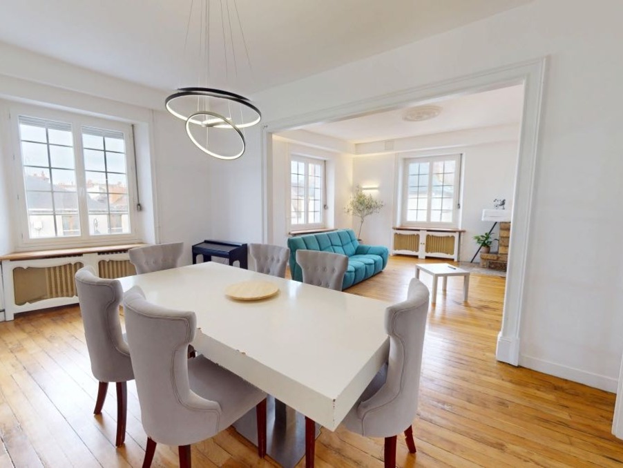 Situé en plein coeur du centre ville historique de Nemours dans un immeuble de standing, venez découvrir cet appartement de 163 m² de plein pied situé au deuxième étage, cet appartement ce compose d'une très grande entrée, d'une pièce de vie de 45 m² avec double exposition, de trois chambres de 12, 15 et 24 m², d'une cuisine aménagée et équipée, d'une salle de bains et d'un WC séparé. Aucun travaux à prévoir, bien très rare sur le secteur, une visite virtuelle est disponible sur demande ou en scannant le QR Code de la dernière photo.