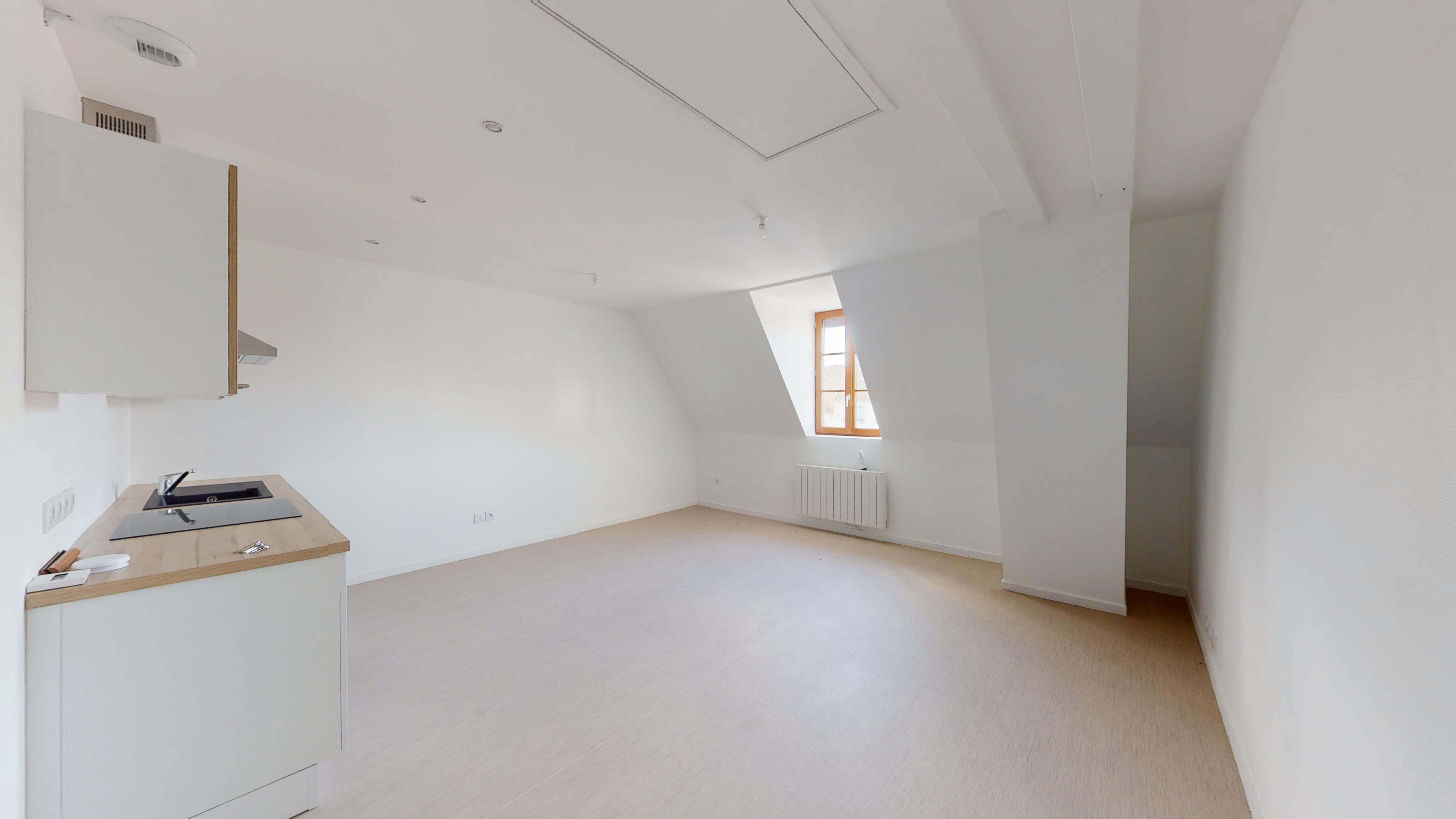 Nous retrouvons une entrée, un grand salon cuisine ouverte aménagée et équipée de 20 m² environ, deux chambres, une salle de bains, et un W.C.