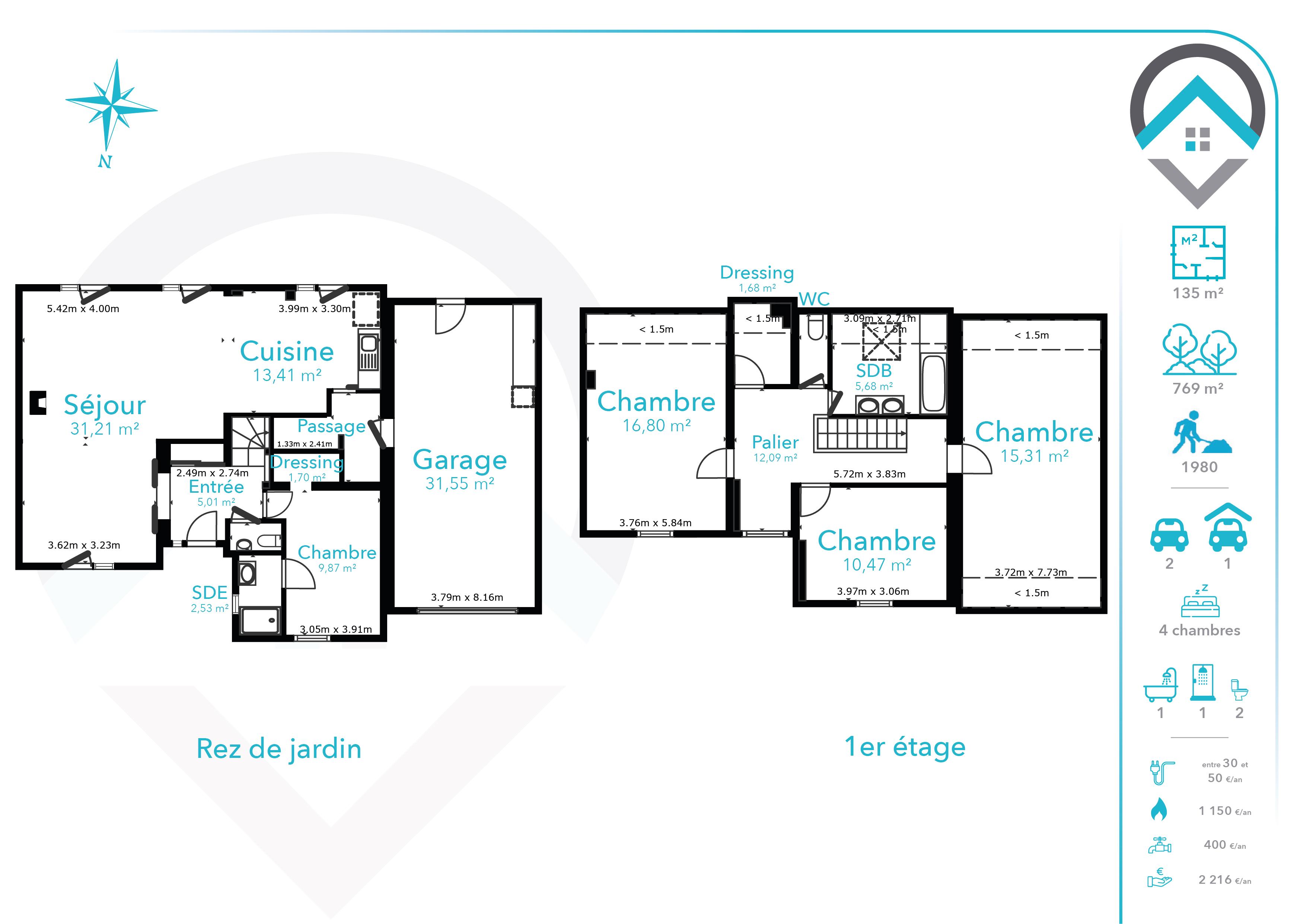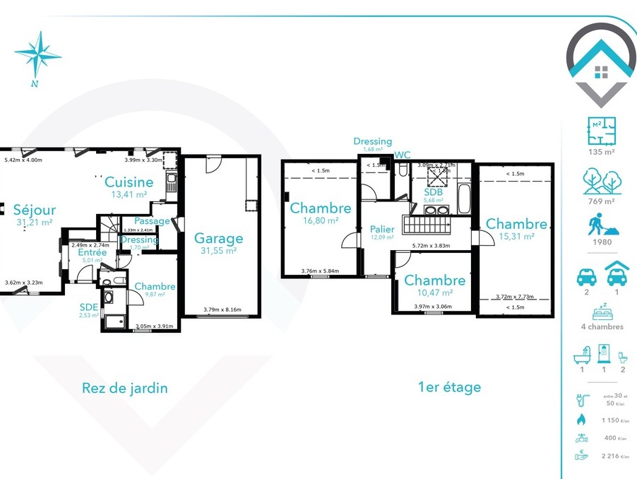 Un garage de plus de 30 m², attenant à la maison, complète ce bien et offre un espace pratique pour le stationnement ou le rangement. L'ensemble allie confort moderne, beaux volumes et cadre apaisant, tout en profitant d'une situation géographique privilégiée proche des commerces, des écoles et des principaux axes de circulation.