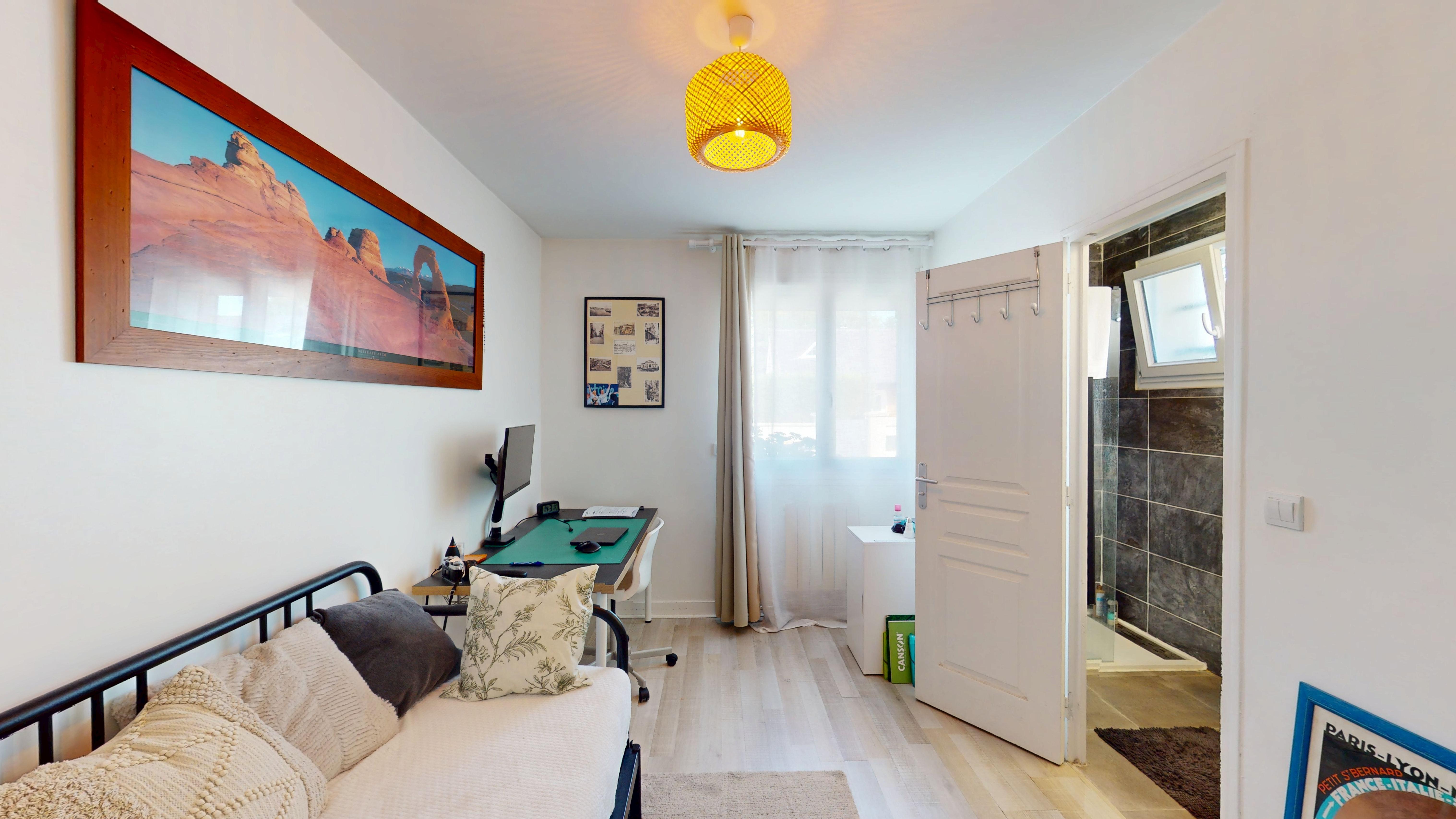 Édifiée sur un terrain clos et arboré de 769 m², elle offre un cadre de vie agréable, idéal pour une famille en quête de confort et de tranquillité. Dès l'entrée, on découvre un vaste espace de vie de près de 45 m² comprenant une salle à manger, un séjour et une cuisine ouverte, formant un ensemble harmonieux et moderne. Le rez-de-chaussée dispose également d'une chambre avec dressing et salle d'eau privative, et d'un WC indépendant.