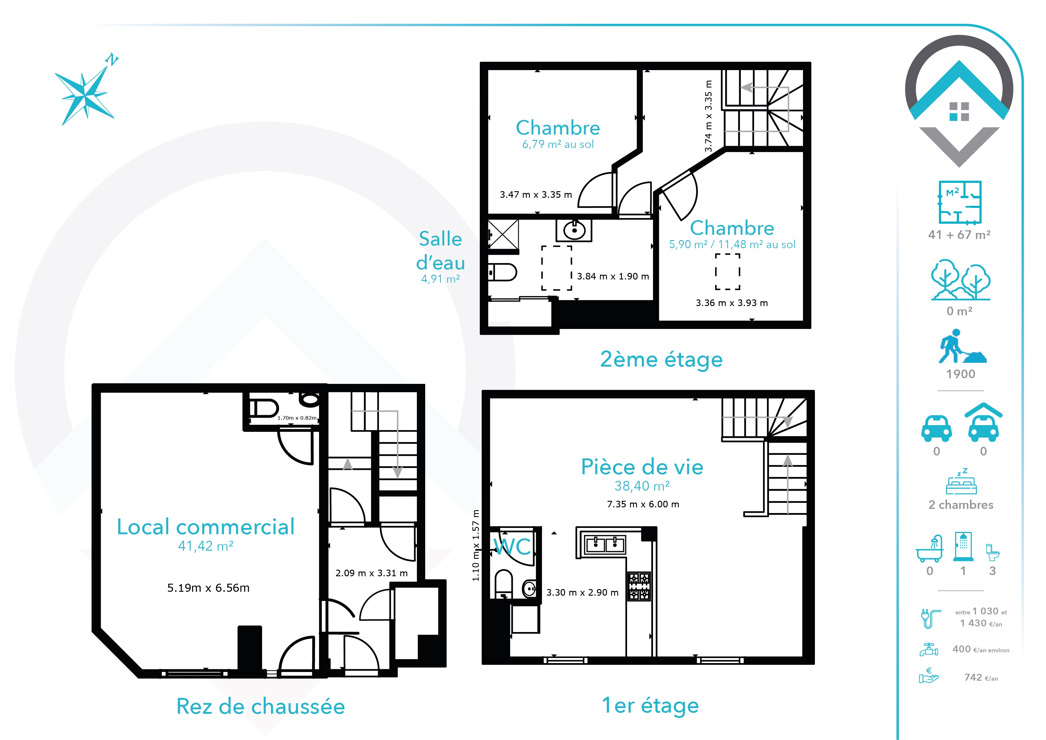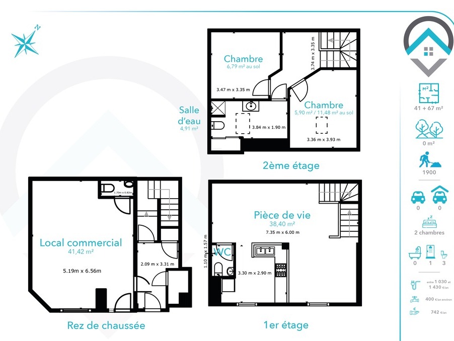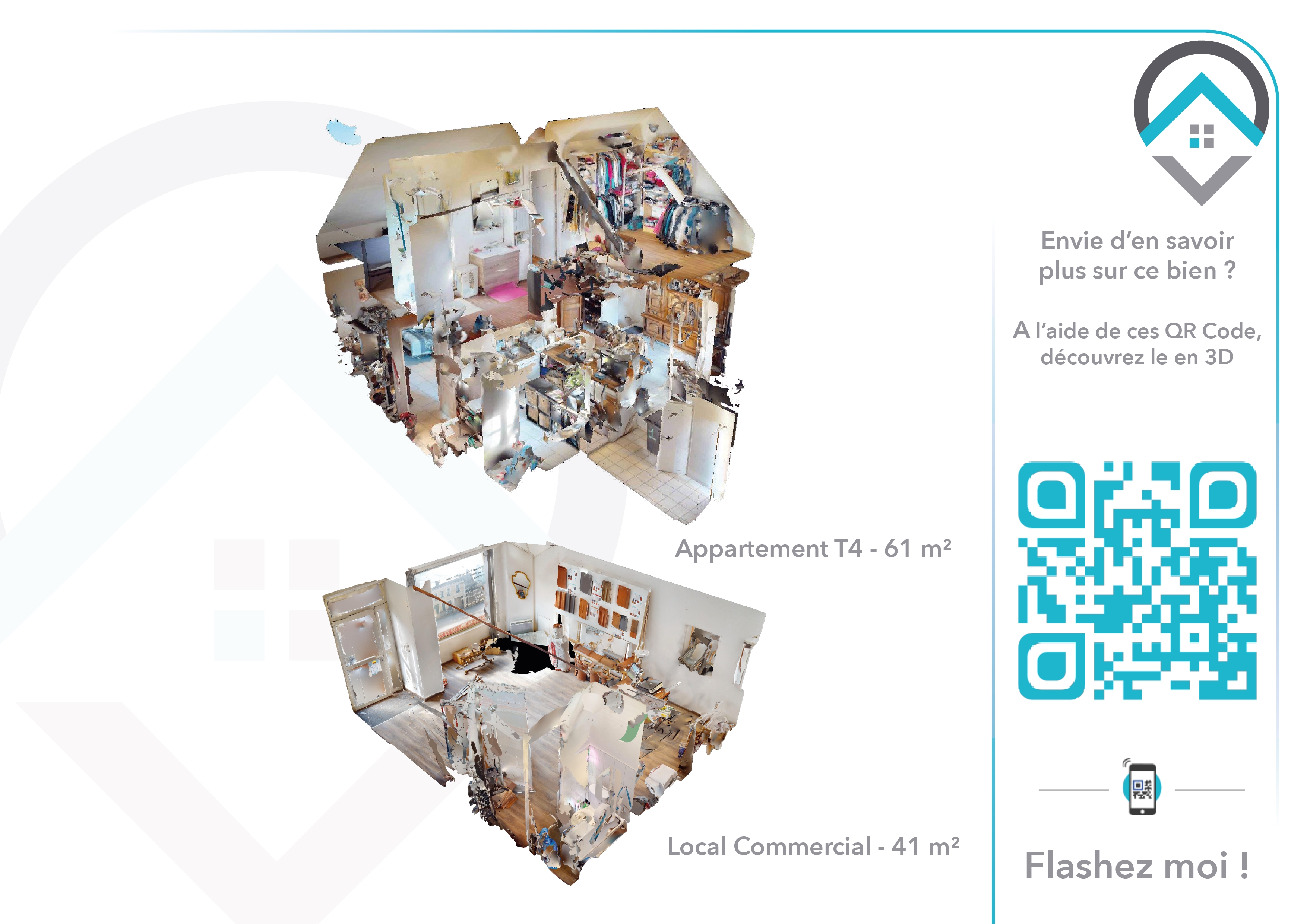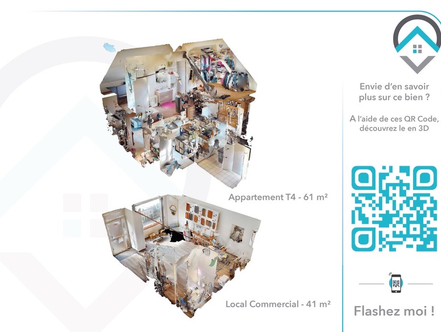 Immeuble composé au rez de chaussée d'un local commercial de 41 m² loué 5,4 K annuel à un artisan local et au premier et second étage un appartement de type T4 actuellement libre de toute occupation, pouvant rapporté 11,4 k annuel composé d'une pièce de vie, d'une cuisine, de deux chambres et d'une salle de bains. Idéal investisseur ou primo accédants. Deux visites virtuelles sont disponible sur demande ou en scannant les QR Code de la dernière photo.