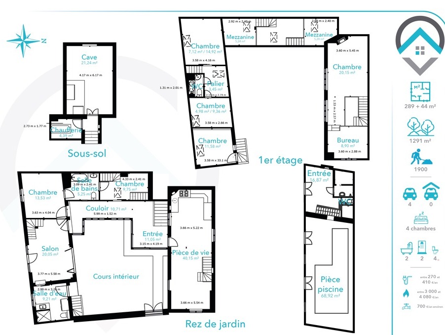 Située dans un petit Hameau, dans un cadre calme et verdoyant, venez découvrir cette maison d'habitation et sa dépendance. La maison principale de 200 m² se compose d'une entée en vérandas donnant accès au sous sol aux deux caves voutées, d'une pièce de vie de plus de 40 m² avec cuisine américaine aménagée et équipée, de deux chambres dont une avec double mezzanine et de deux salle d'eau. À l'étage au dessus de la pièce de vie nous retrouvons un second salon et un bureau et de l'autre côté de la maison deux pièces pouvant faire office de chambre. A l'extérieur à quelques mètre nous retrouvons un second bâtiment de 90 m² avec une piscine d'intérieur, un hammam et une salle d'eau. Bien très rare sur le secteur. Une visite virtuelle est disponible sur demande ou en scannant la QR Code de la dernière photo.