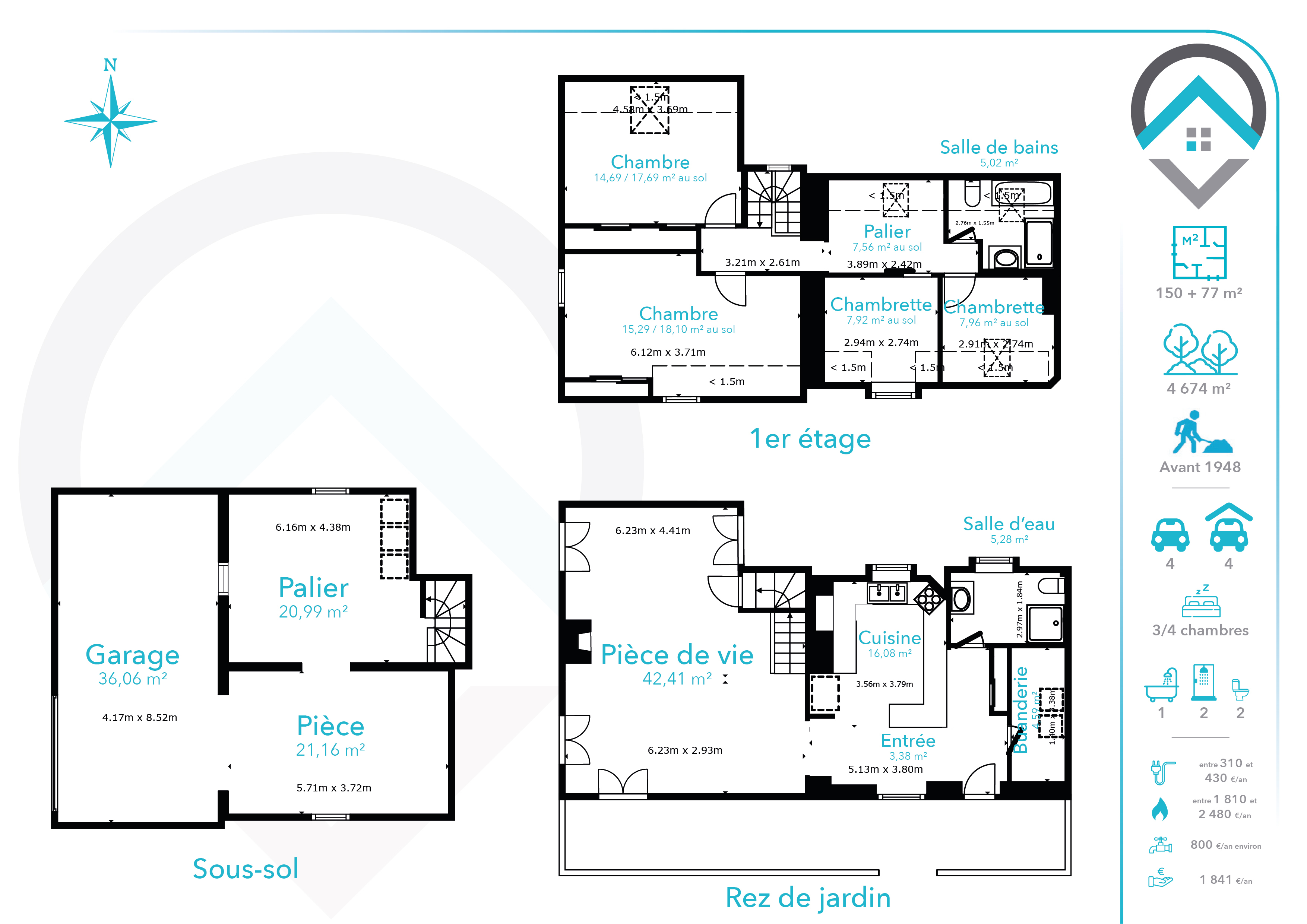 Située dans un quartier très calme, venez découvrir cette maison avec son terrain exceptionnel de plus de 4 500 m² très rare dans notre secteur. Cette maison se compose au rez de jardin d'une entrée, d'une cuisine américaine aménagée et équipée, d'une grande et lumineuse pièce de vie de plus de 40 m², d'une salle d'eau et d'une buanderie. Au premier étage nous retrouvons un grand palier desservant 2 grandes chambres et 2 petites chambres pouvant être reliées entre elles ainsi qu'une salle de bains. Un sous-sol de 78 m² composé d'un garage, et de deux grandes pièce complète cette maison. À l'extérieur nous retrouvons un autre garage double, ainsi qu'un carport. Bien très rare sur le secteur, une visite virtuelle est disponible sur demande ou en scannant le QR Code de la dernière photo.