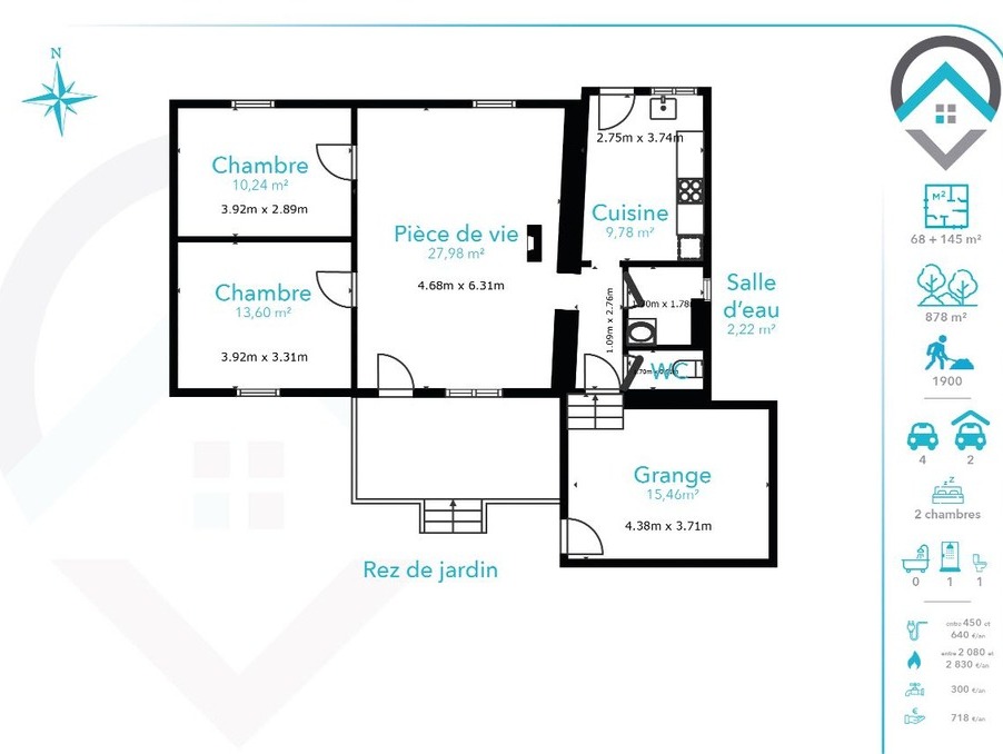 Honoraires de 6.38 % TTC inclus à la charge de l'acquéreur (102 460 € hors honoraires)