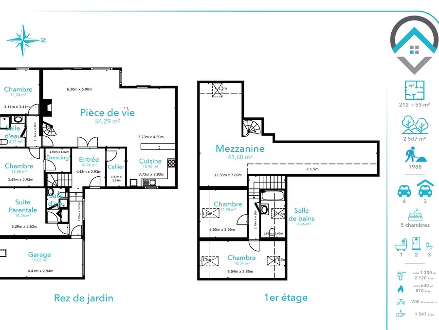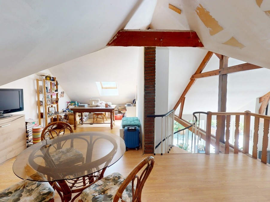 À l'étage, une vaste mezzanine surplombe le séjour et dessert deux chambres supplémentaires ainsi qu'une salle de bains, offrant ainsi des volumes généreux et une belle modularité pour une grande famille ou pour accueillir.