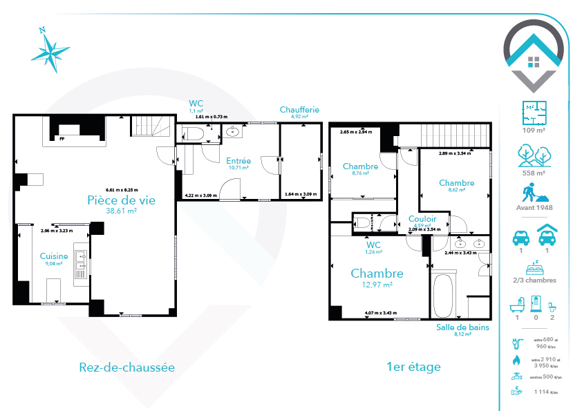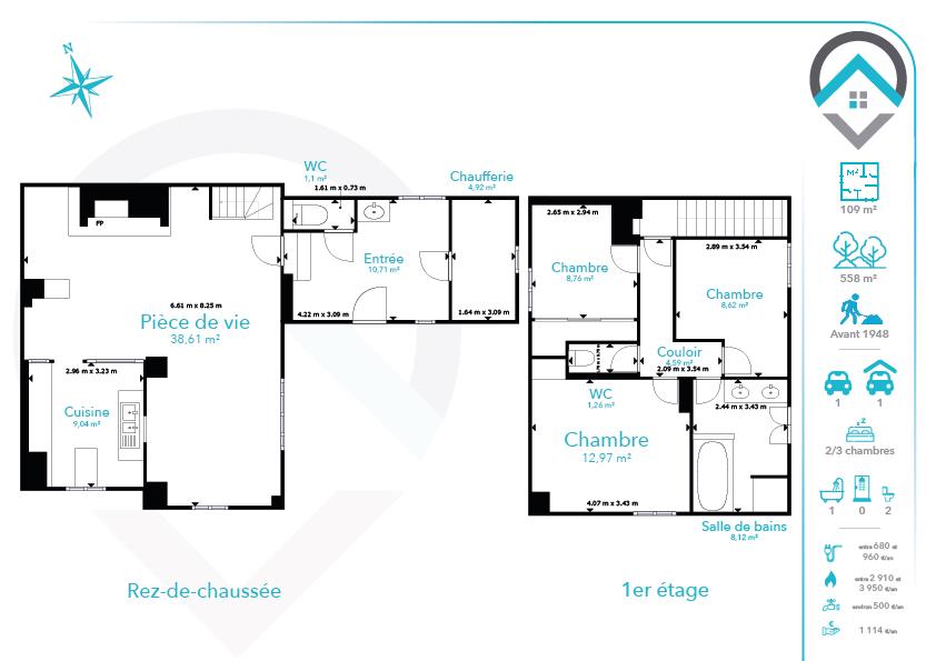 Au rez-de-chaussée une entrée spacieuse, une grande pièce de vie de 39 m² environ, une cuisine, ainsi qu'une chaufferie.