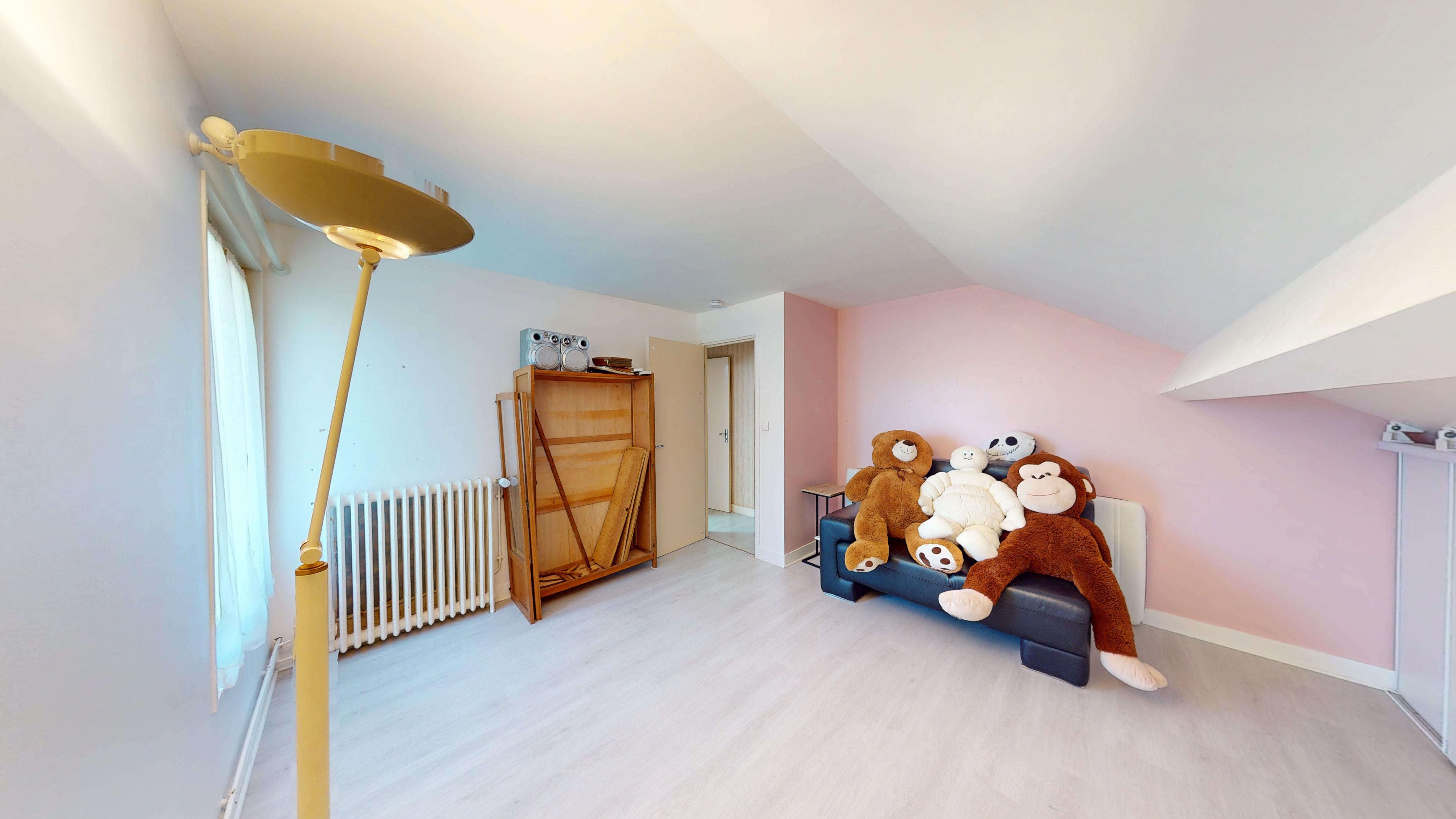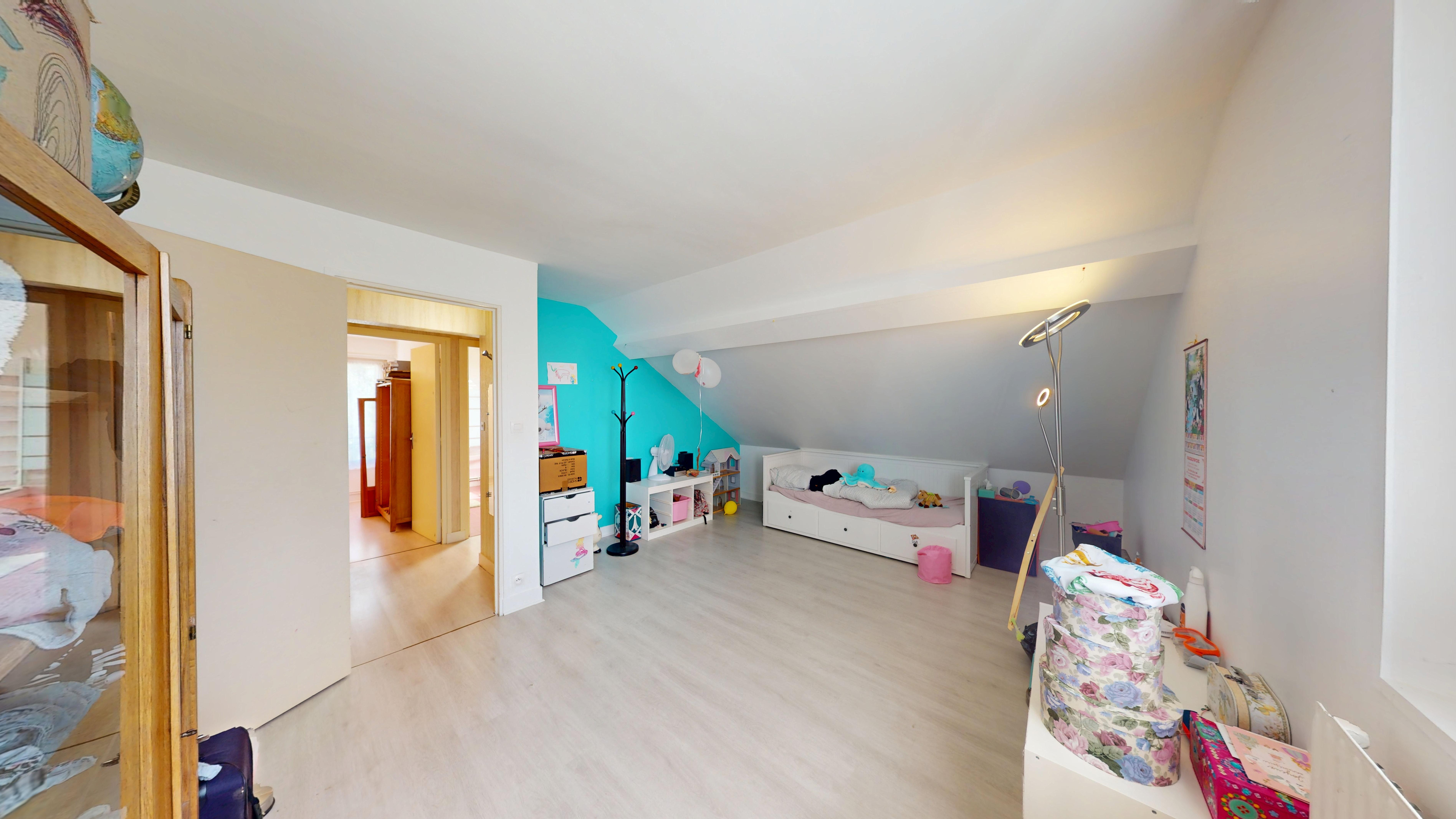 À l'étage, un palier dessert deux belles chambres , dont une avec dressing, une salle de bain et un WC indépendant.