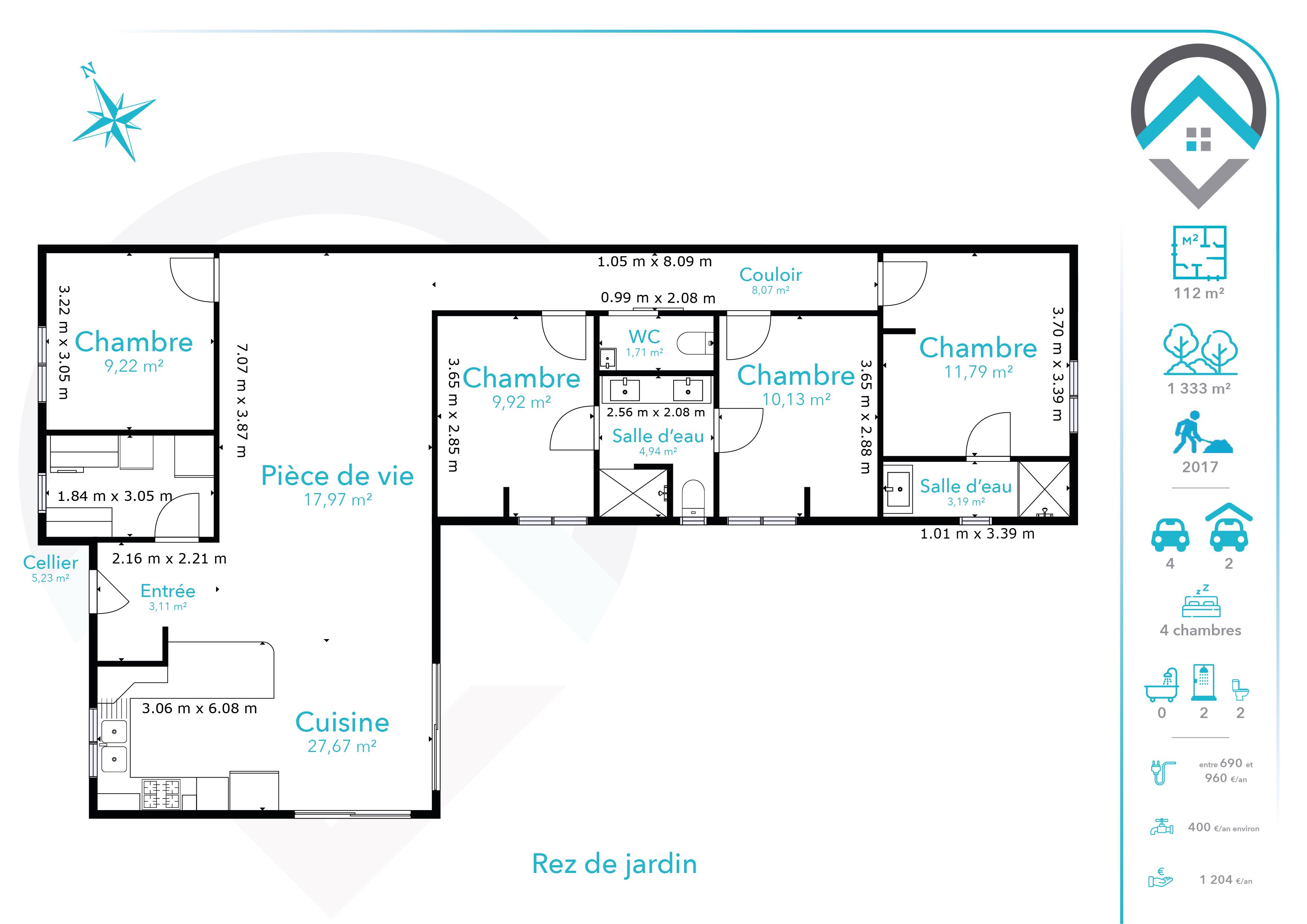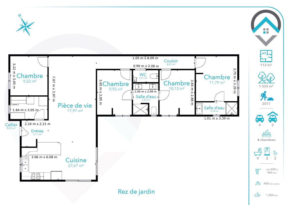 Située dans un charmant village à quelques minutes seulement de toutes les commodités, venez découvrir cette maison de plain-pied construite en 2017 sur une parcelle de terrain de 1 333 m². Elle se compose d'une entrée, d'une grande et lumineuse pièce de vie de 45 m² avec cuisine américaine aménagée et équipée, de trois chambres, d'une salle d'eau, d'une suite parentale avec sa salle d'eau, d'un WC séparé et d'un cellier buanderie. Dans la parcelle nous retrouvons également un carport de 38 m². Aucun travaux à prévoir, bien très rare sur le secteur. À visiter rapidement. Une visite virtuelle est disponible sur demande ou en scannant le QR Code de la dernière photo.