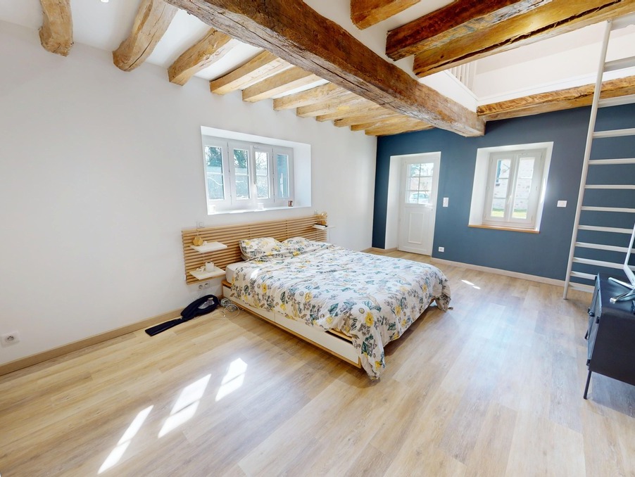 Située à l'abris des regards au milieu de la nature, venez découvrir cette ancienne ferme entièrement rénovée et édifiée sur une parcelle de 3 182 m² avec une partie de bois.. Elle se compose de 2 bâtiments principaux. Une maison d'habitation composée au rez de jardin d'une entrée, d'une lumineuse pièce de vie avec mezzanine pouvant faire office de bureau, d'une cuisine aménagée et équipée, d'une salle d'eau, de deux chambres et d'un WC séparé. A l'étage d'un côté de la maison nous retrouvons un dressing au dessus d'une des chambres et de l'autre côté, contigu à la mezzanine une troisième chambre. Dans le jardin une dépendance a été aménagée avec une grande pièce de vie et une chambre au premier étage. Nous retrouvons également une enfilade de 4 chenils avec une réserve, mais aussi 2 espaces de rangement sur le bâtiment de la dépendance. Pas de travaux à prévoir, bien rénové avec qualité et goût. Une visite virtuelle est disponible sur demande ou en scannant le QR Code de la dernière photo.