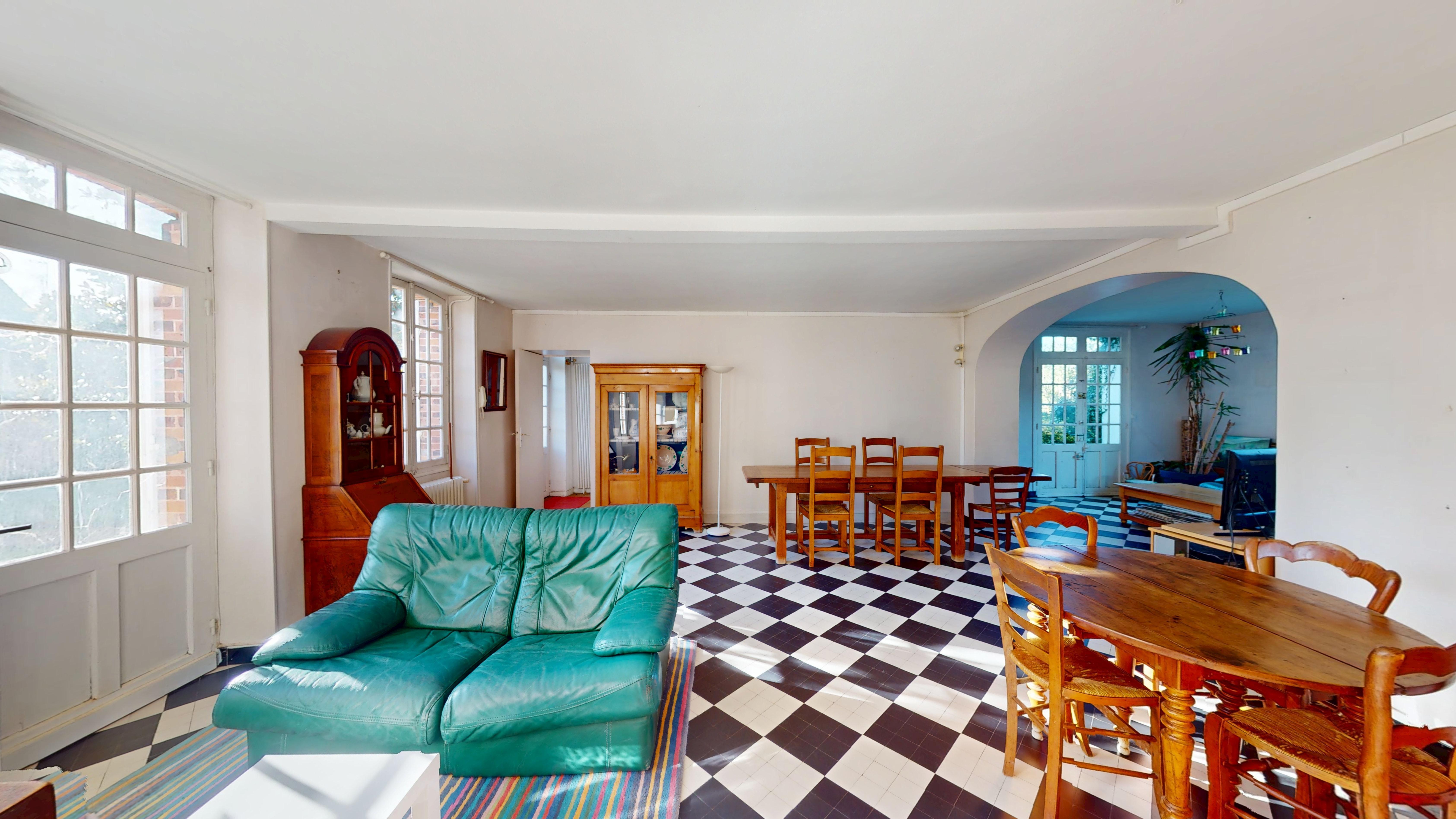 Au rez-de-chaussée, une entrée spacieuse, un grand salon-séjour de 49 m², une cuisine, trois chambres dont deux de 12 et 14 m², une salle d'eau, un W.C séparé, offrant donc la vie de plain-pied, et un débarras.