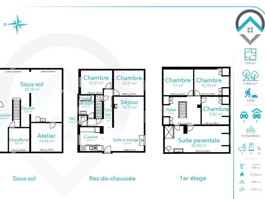 Le sous-sol, complet et fonctionnel, comprend plusieurs pièces utiles dont une chaufferie et un atelier.