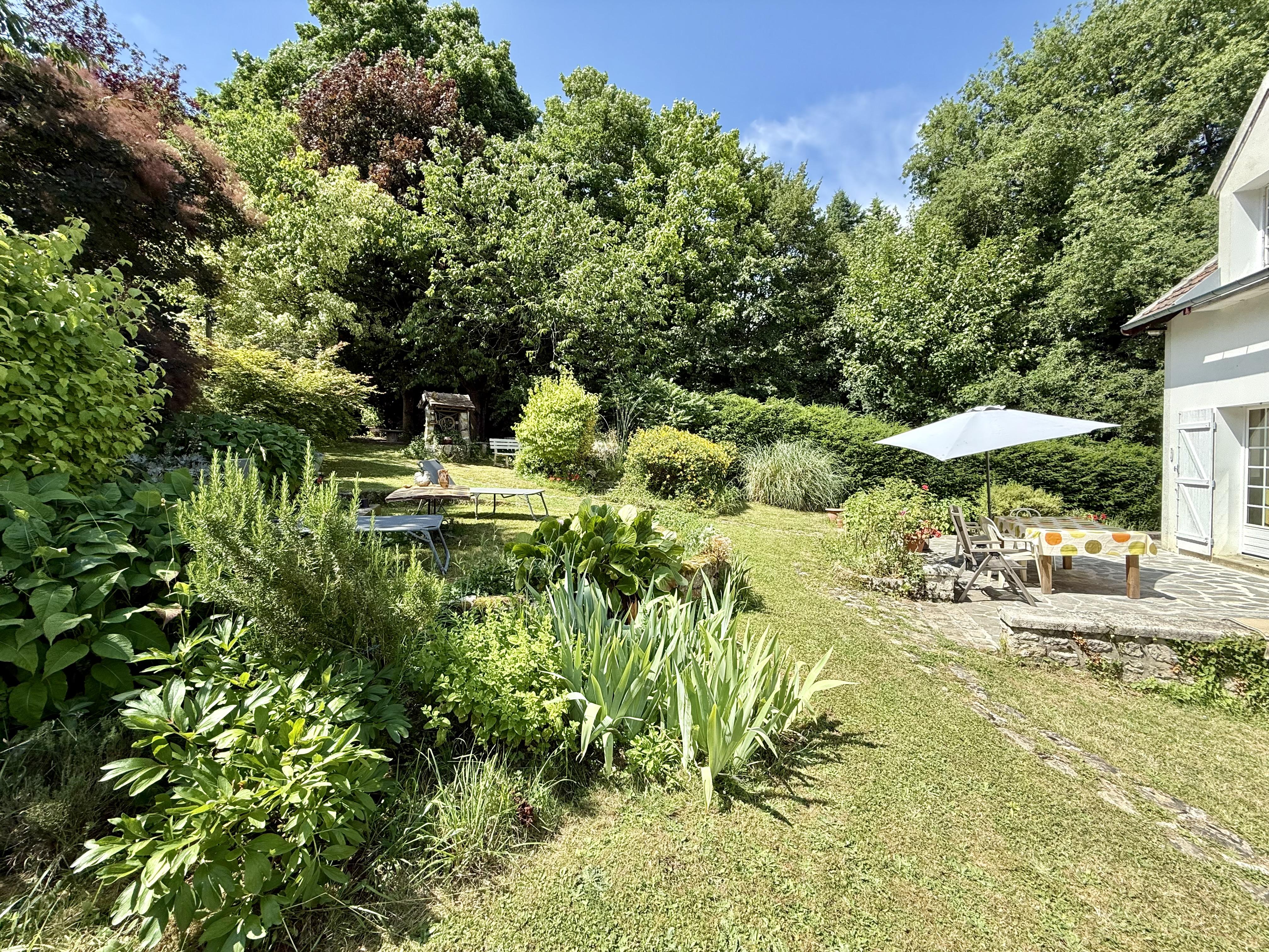 Côté extérieur, vous profiterez d'une terrasse exposée plein sud et d'un magnifique jardin paysager aux nombreux arbres, idéal pour les amoureux de nature et de tranquillité.