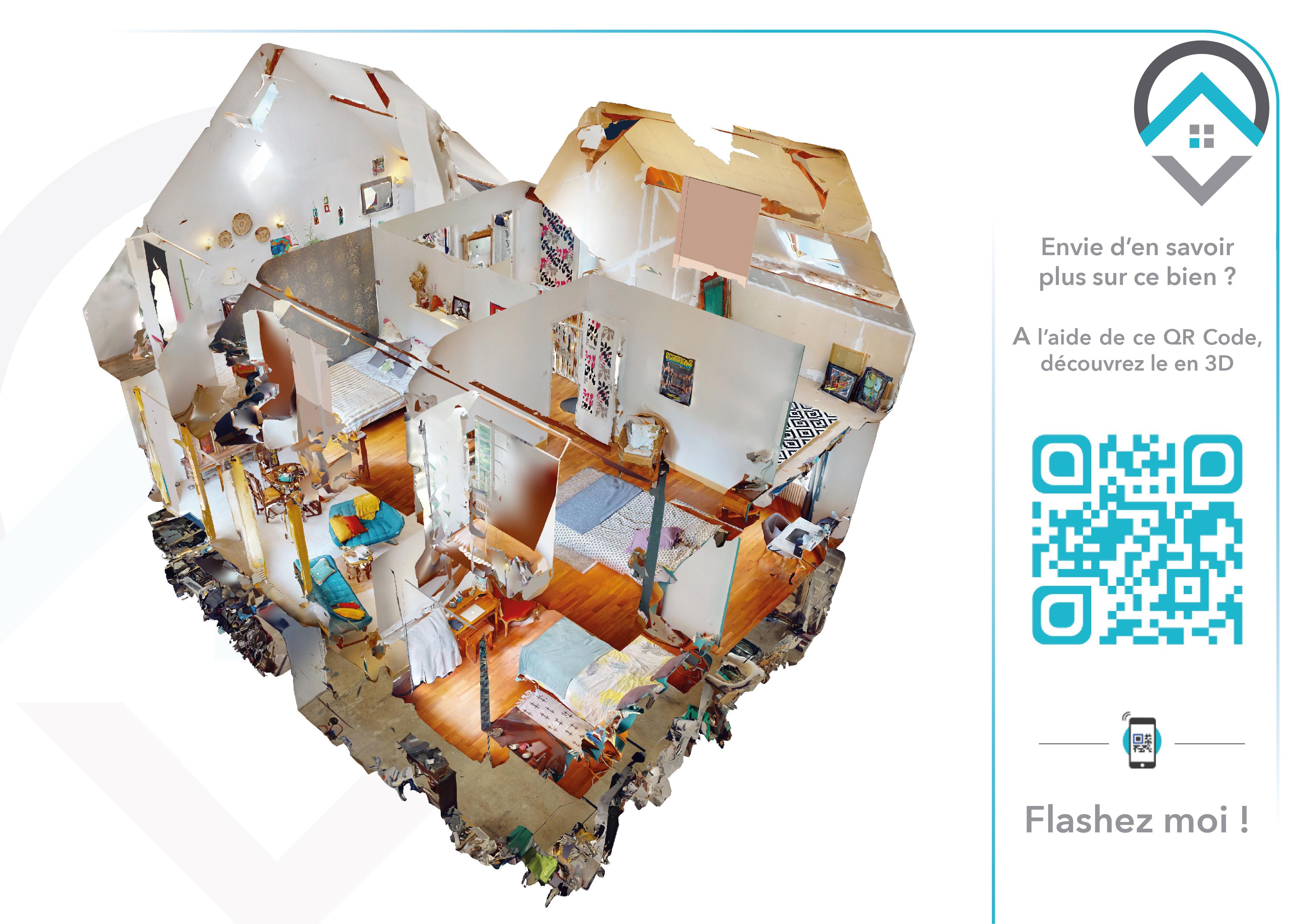 Une visite virtuelle est disponible sur demande ou en scannant le QR Code de la dernière photo.
