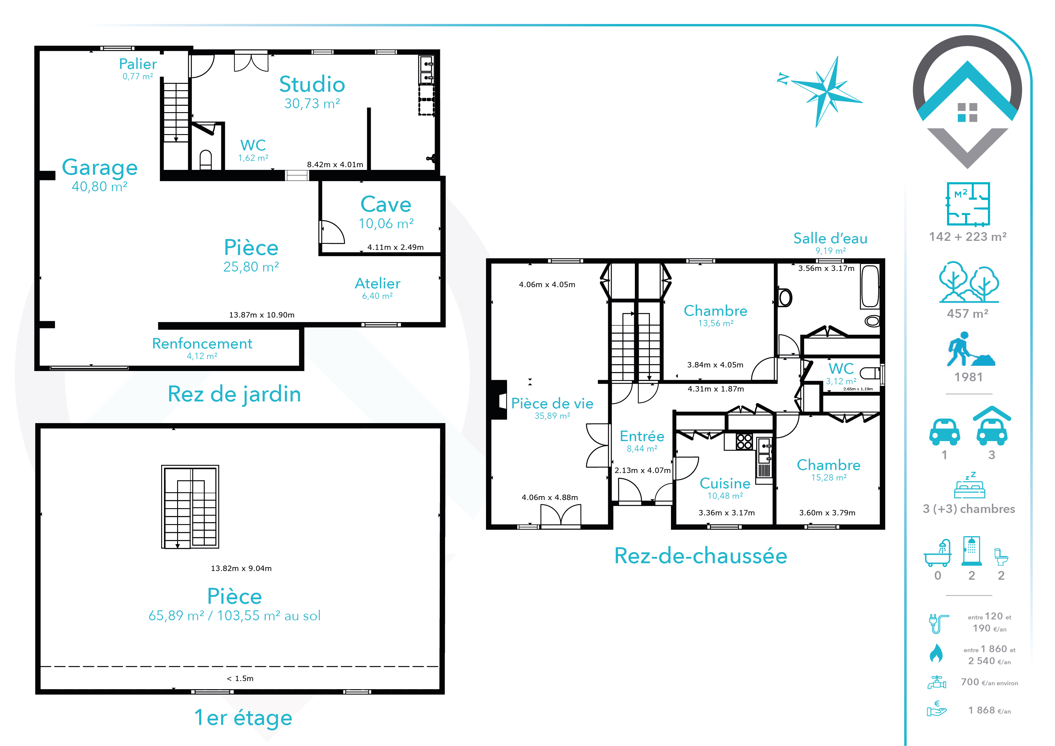 Située en plein coeur du centre ville dans une impasse sans aucune nuisance, venez découvrir cette maison édifiée sur une parcelle de 457 m². Cette maison mesure au total 365 m². Elle se compose en rez de jardin d'un sous-sol total composé d'un garage de 92 m² carrelé, d'un espace de type studio de 34 m² disposant de son entrée indépendante mais qui peut tout aussi bien être accessible par la maison. Au premier niveau nous retrouvons une grande entrée, une lumineuse pièce de vie de 37 m², une cuisine aménagée et équipée, deux chambres, une salle d'eau et un WC séparé. Au second niveau nous retrouvons 121 m² au sol de comble à aménager. Bien très rare sur le secteur, offrant une possibilité de surface habitable de près de 260 m². Une visite virtuelle est disponible sur demande ou en scannant le QR Code de la dernière photo.