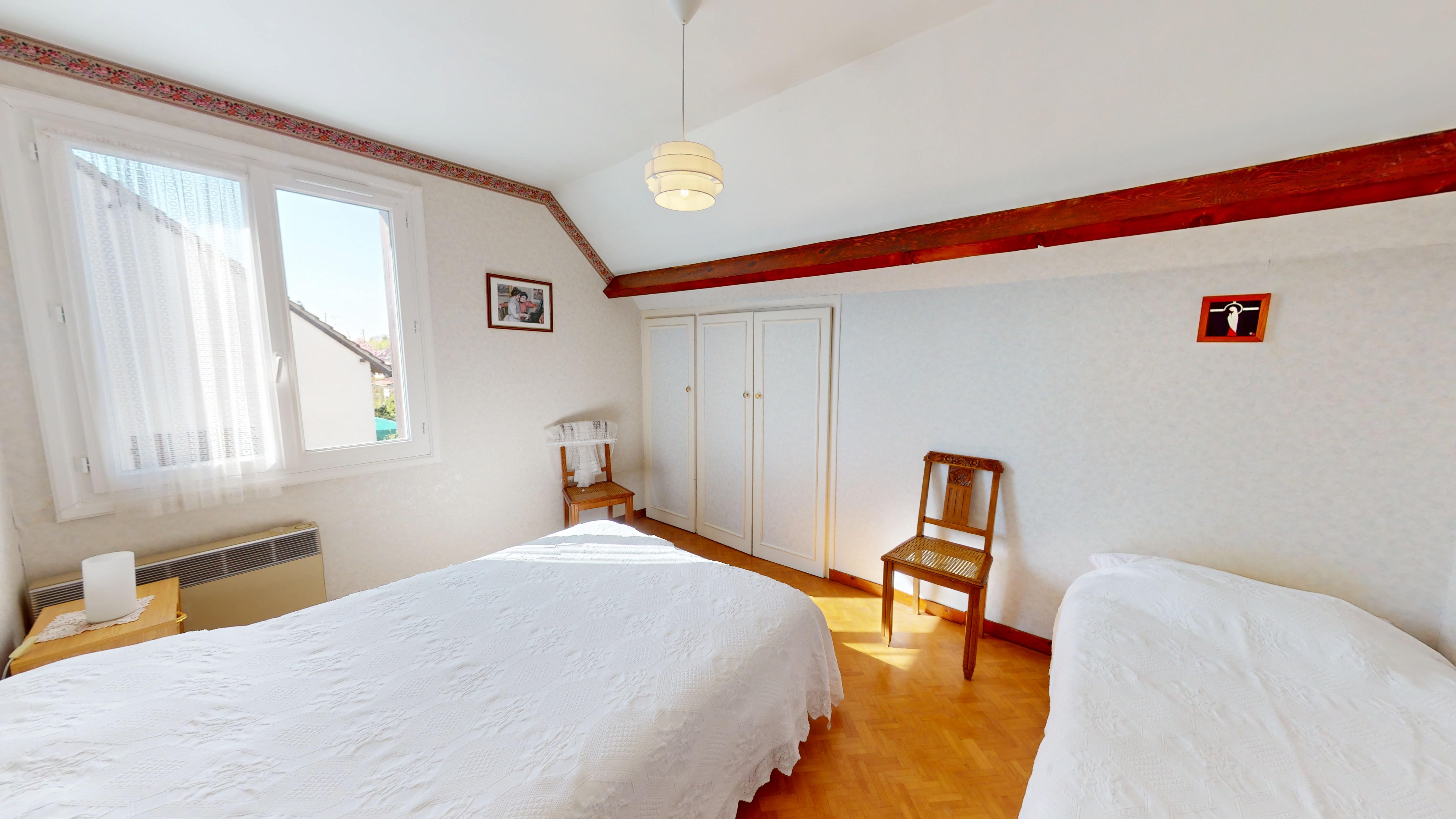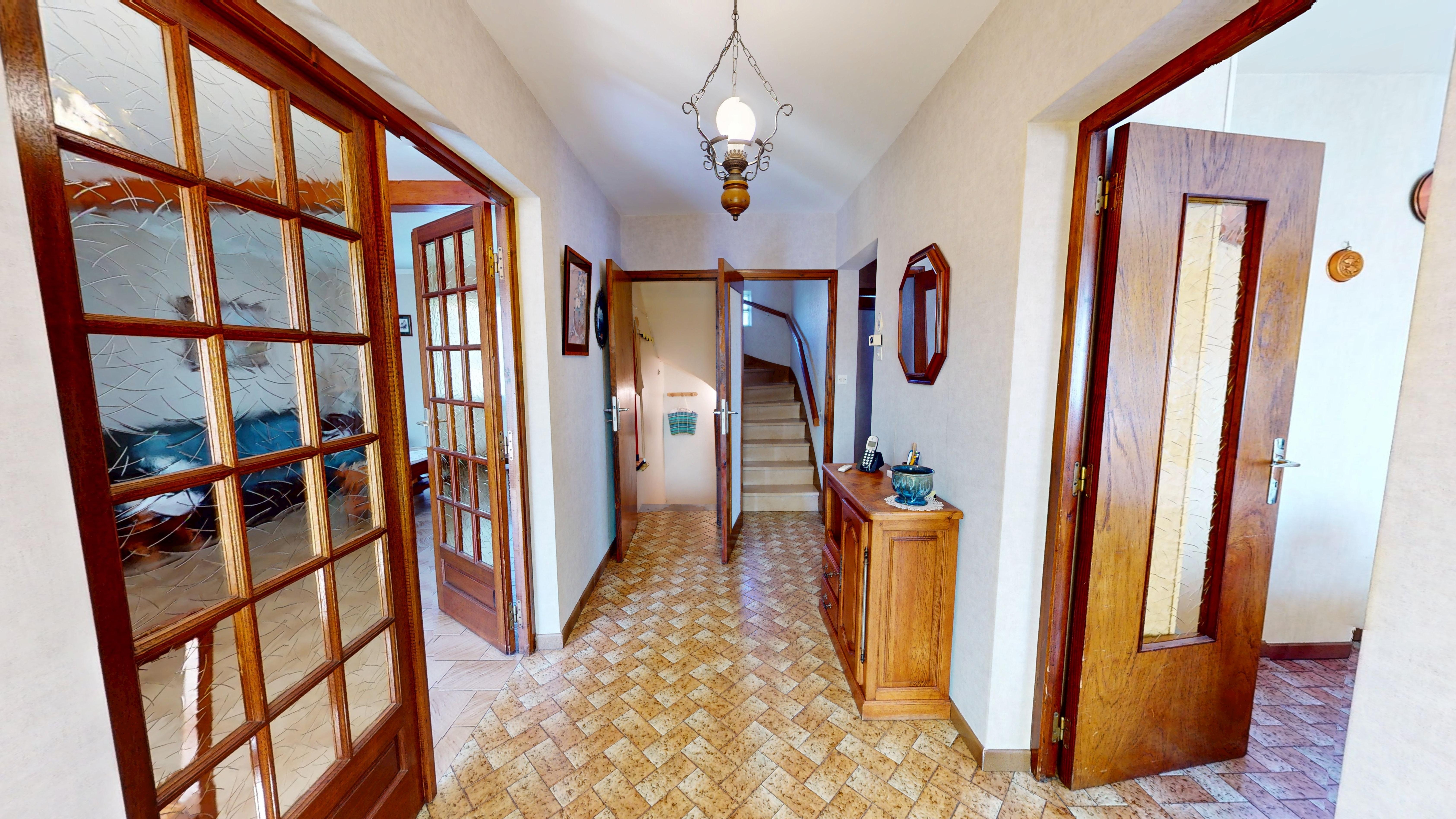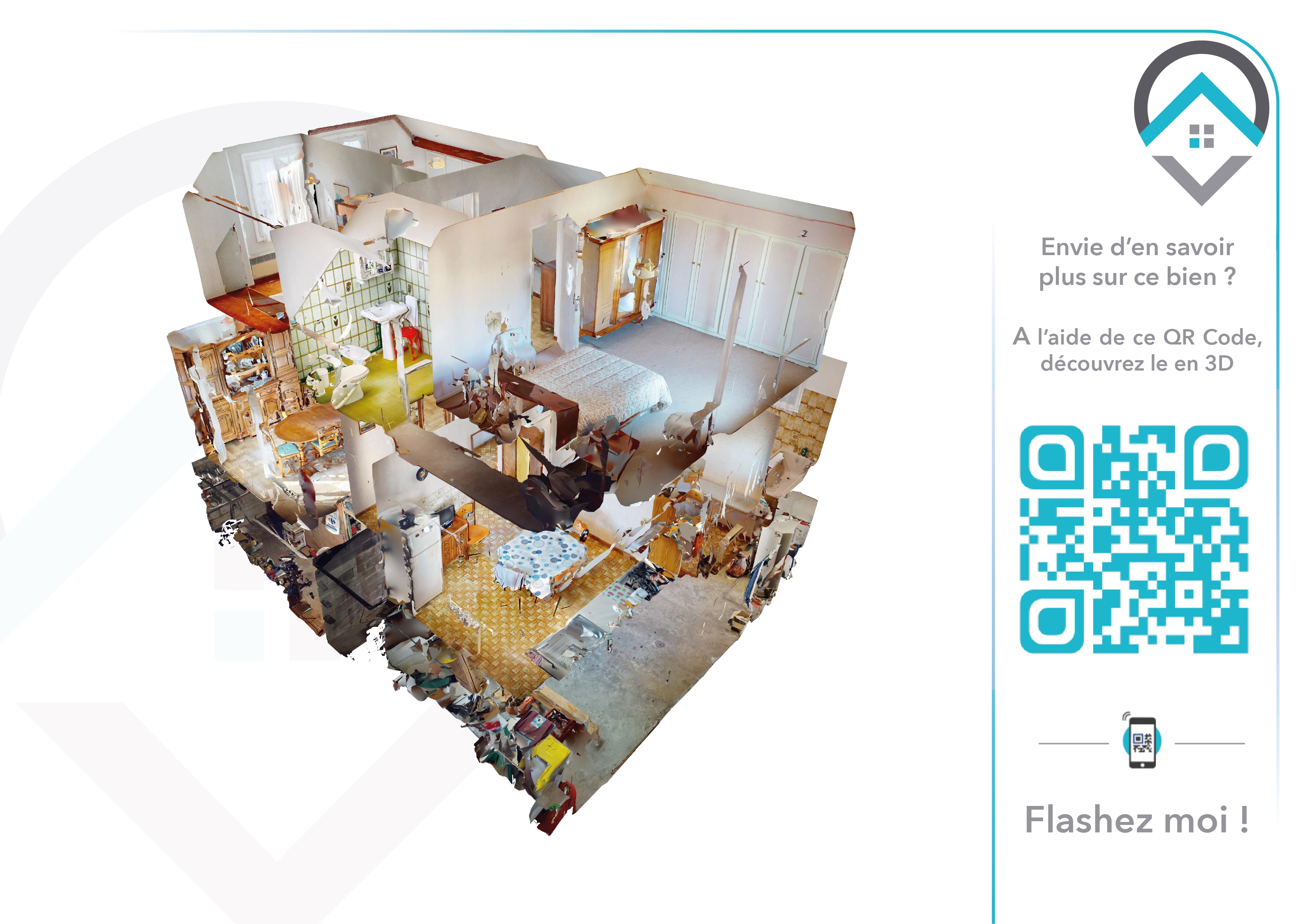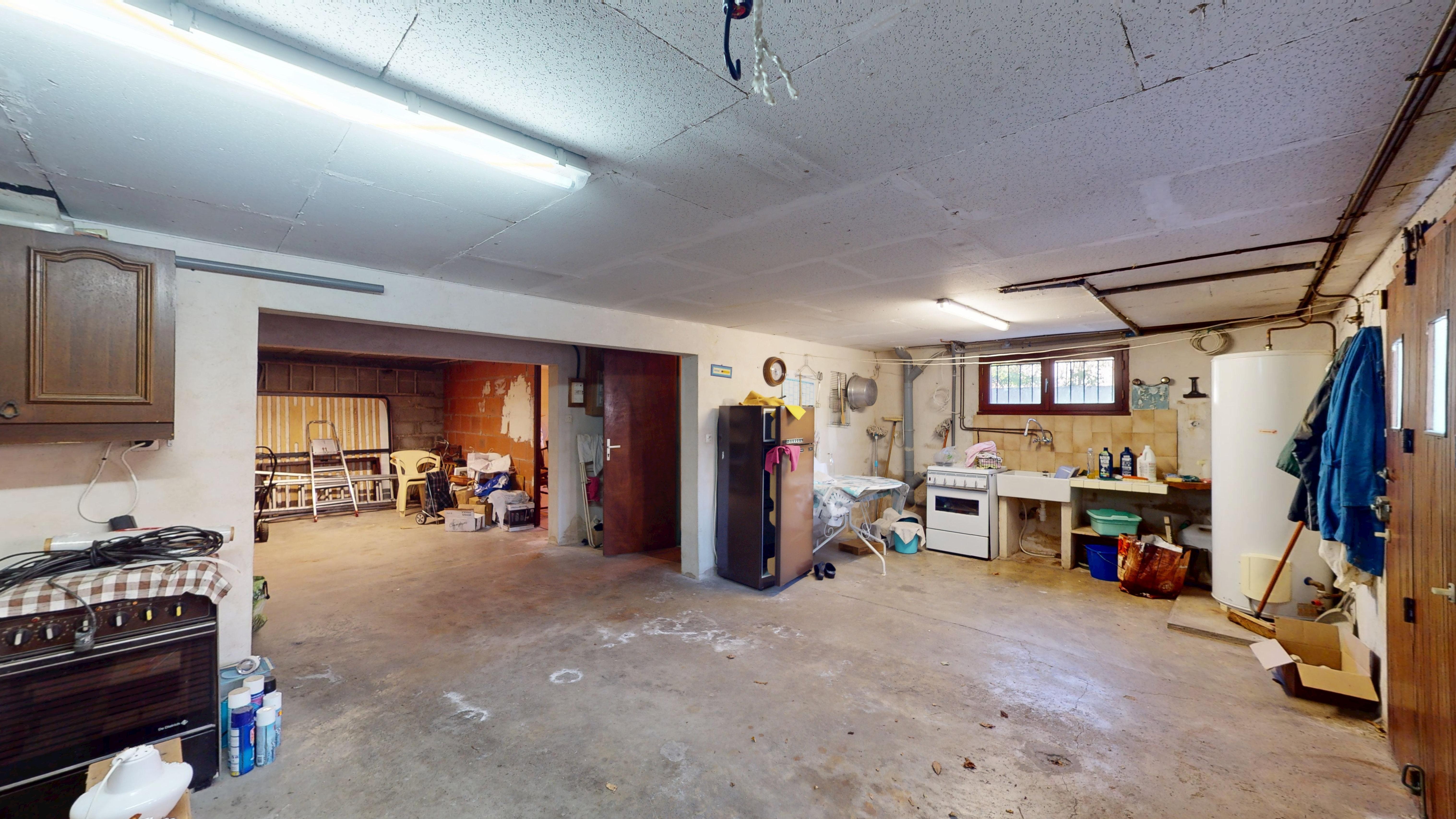 Nous retrouvons ensuite au sous-sol un garage de près de 50 m², une chambre d'appoint et une cave. Maison très intéressante, à visiter rapidement. Une visite virtuelle est disponible sur demande ou en scannant le QR Code de la dernière photo.