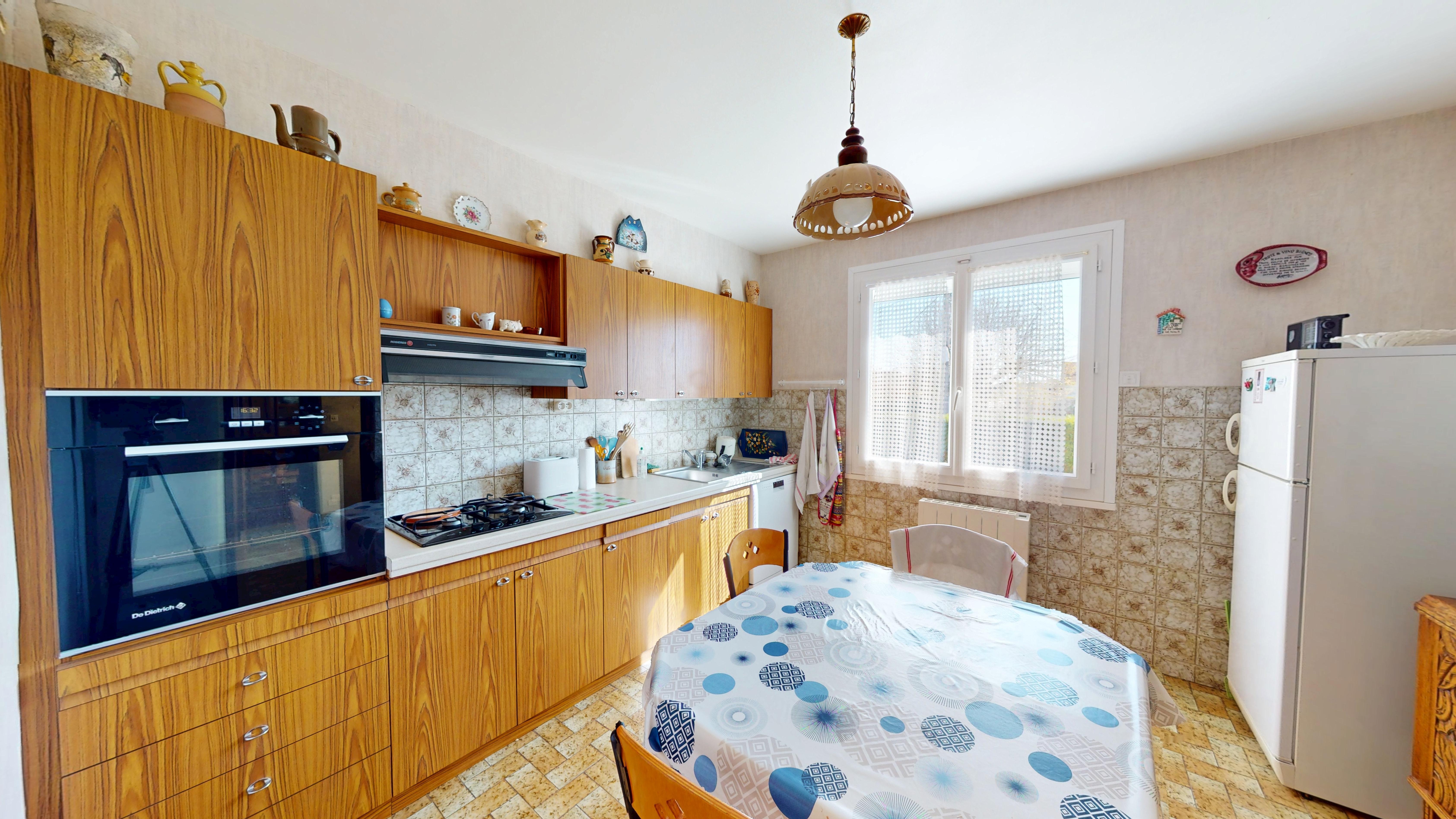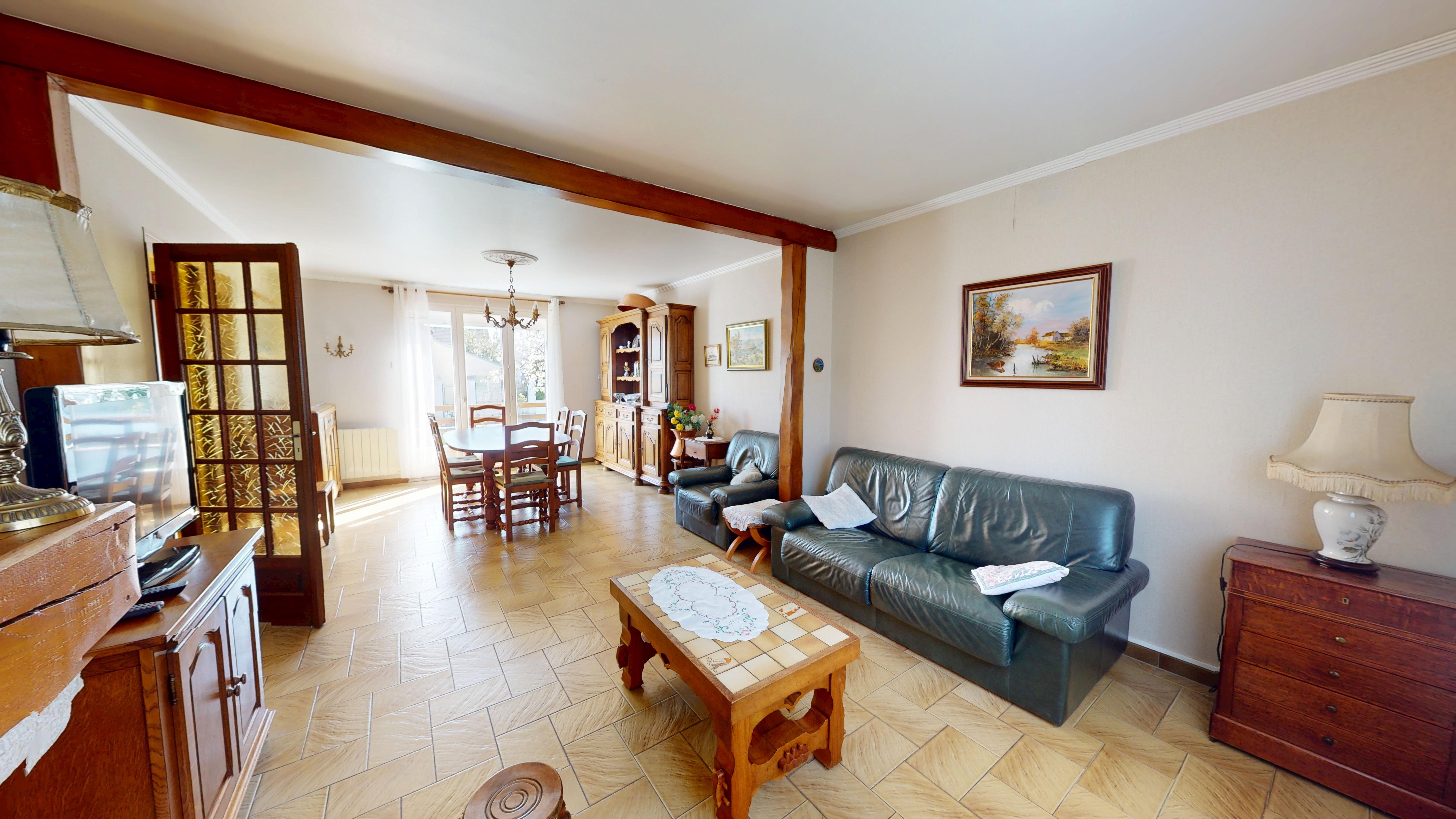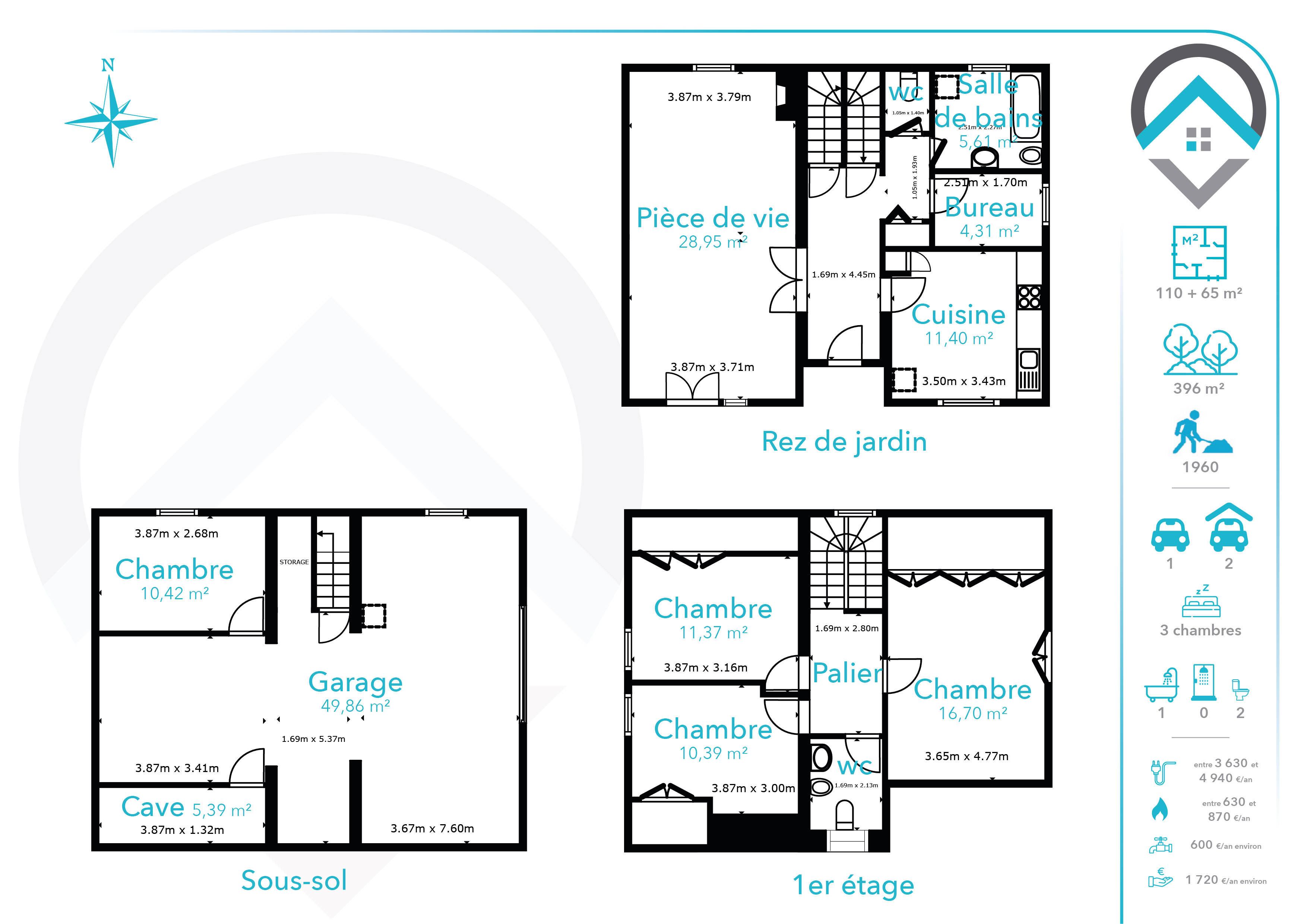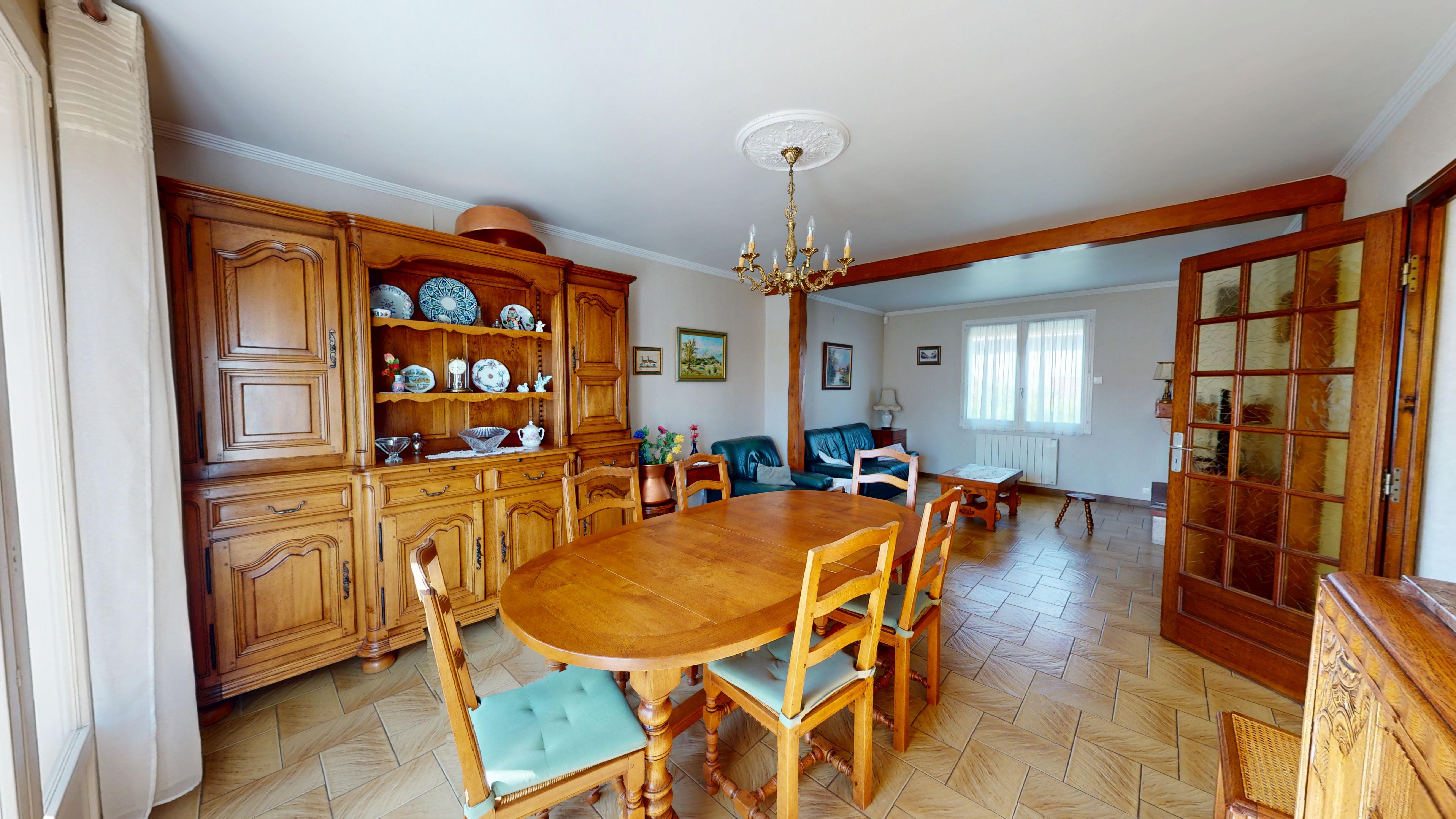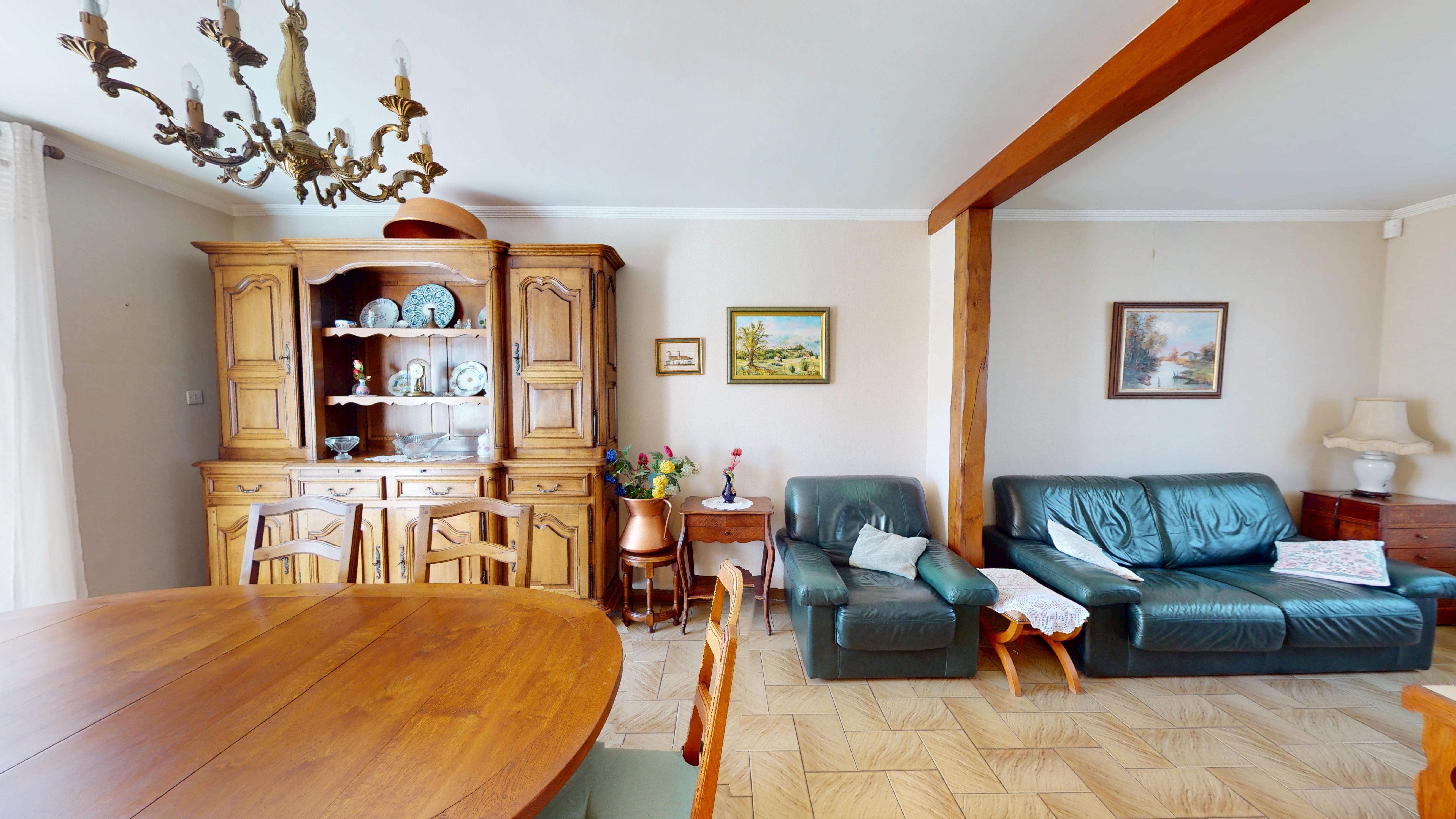 Nous retrouvons ensuite au sous-sol un garage de près de 50 m², une chambre d'appoint et une cave. Maison très intéressante, à visiter rapidement. Une visite virtuelle est disponible sur demande ou en scannant le QR Code de la dernière photo.