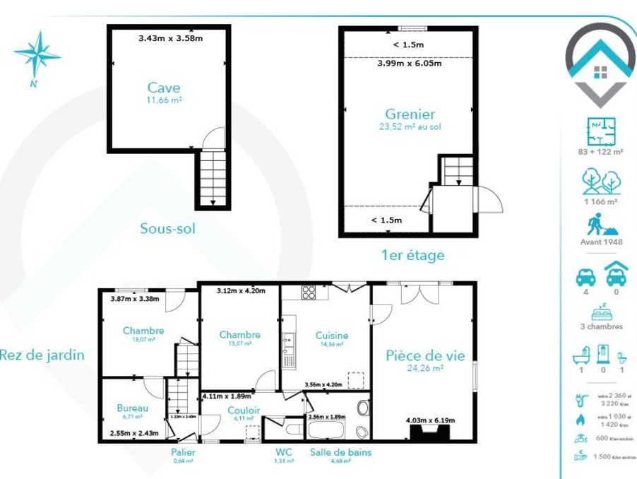 Venez découvrir cette maison de 3 pièces réparties sur 83 m² habitable.