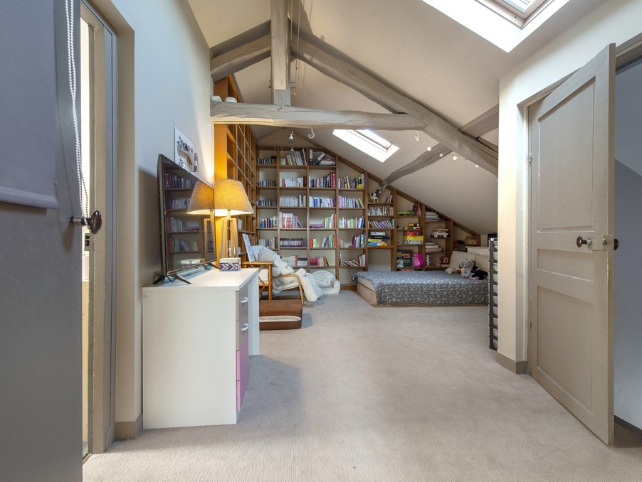 Le second et dernier étage propose une grande pièce palière, deux chambres supplémentaires et une salle d'eau avec WC, offrant un espace idéal pour une famille, un bureau ou des chambres d'amis.