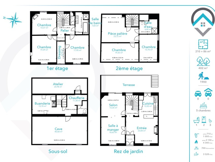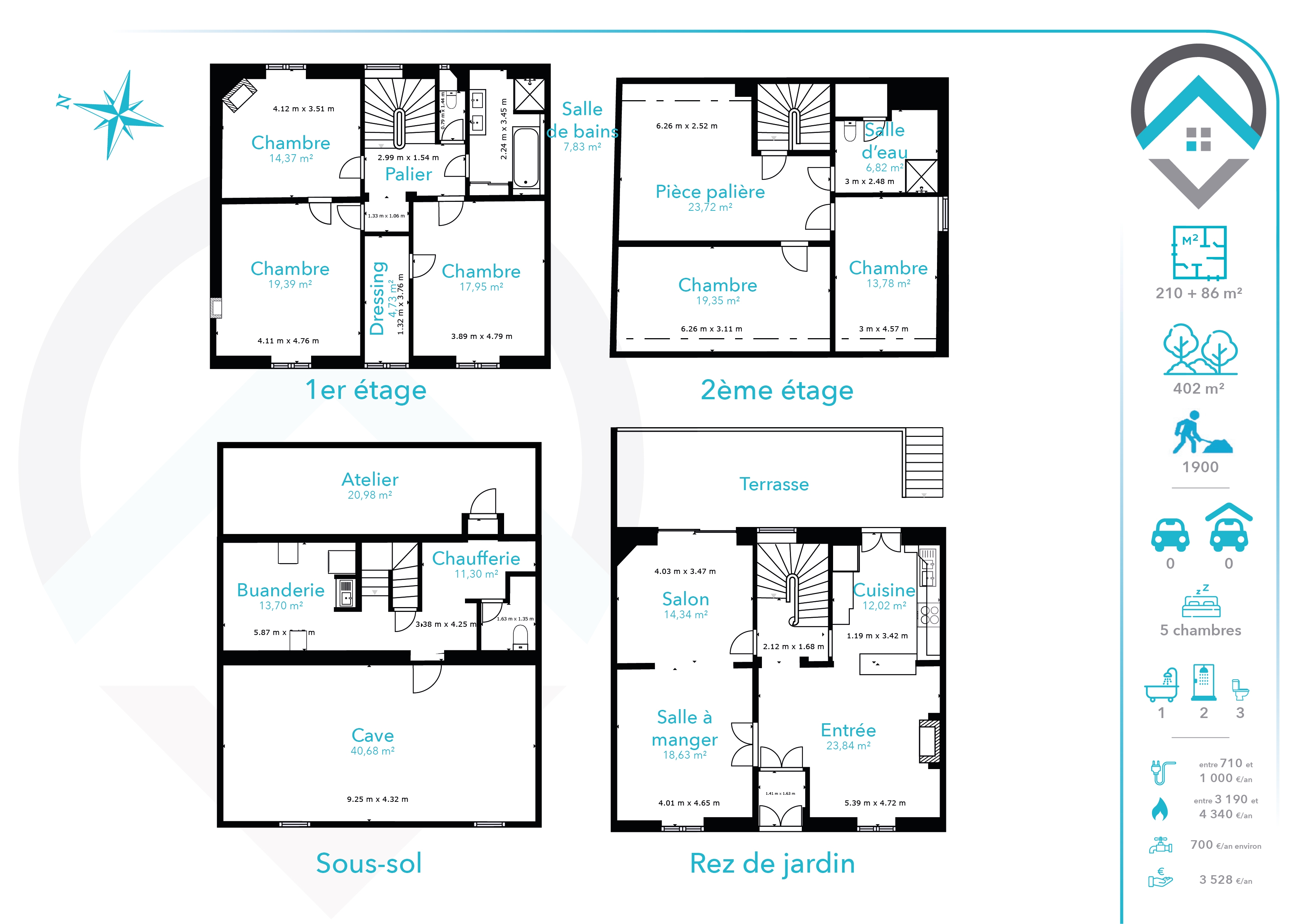 Un grand sous-sol complète ce bien et comprend une buanderie, une chaufferie, une cave, un atelier ainsi qu'un WC séparé, apportant de nombreux espaces de rangement et de confort.