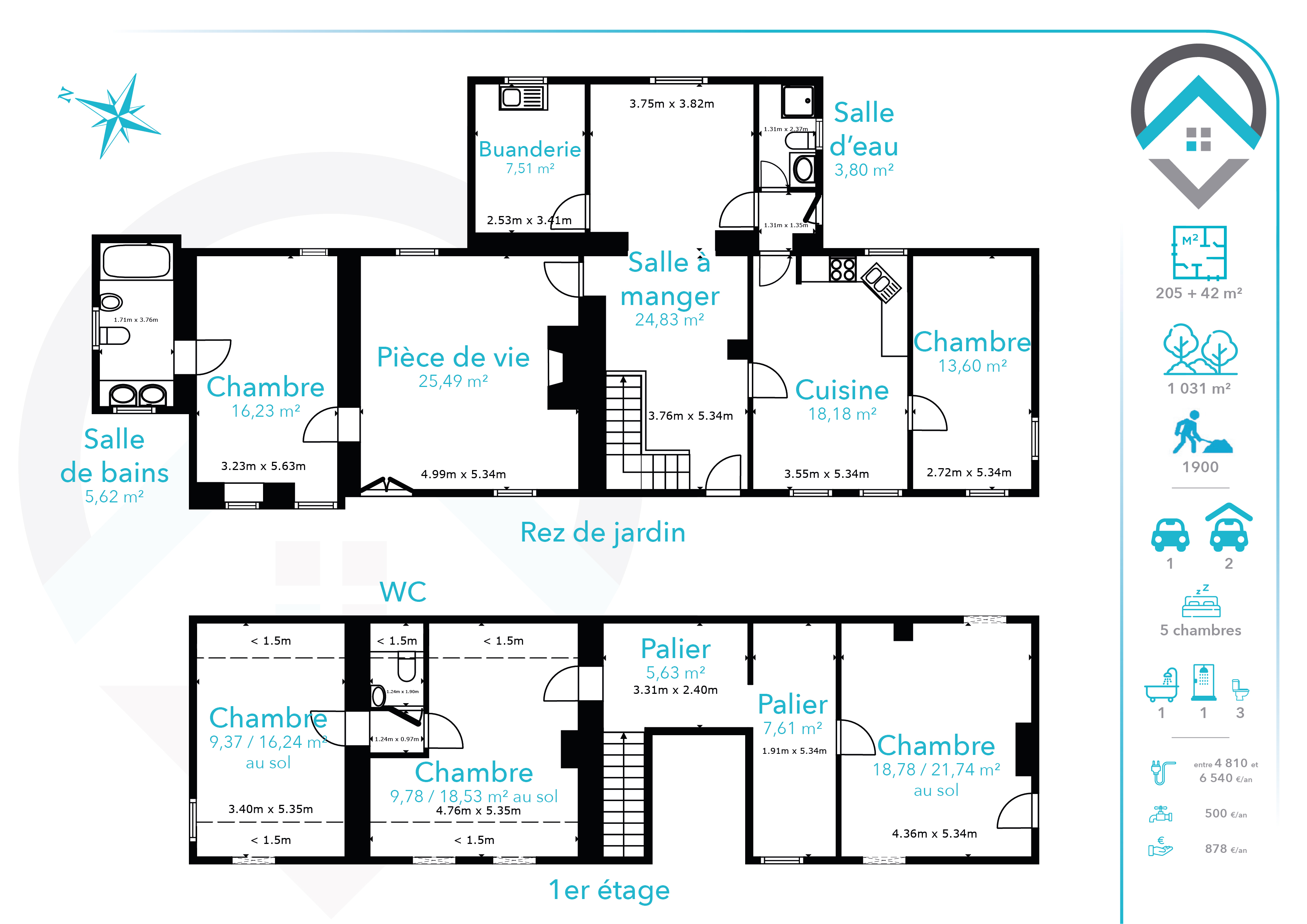 Honoraires de 5 % TTC inclus à la charge de l'acquéreur (200 000 € hors honoraires)