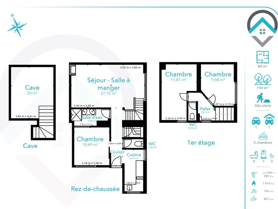 À l'étage, un palier distribue deux belles chambres supplémentaires ainsi qu'un second wc indépendant. Vous serez également séduit par sa superbe cave voûtée d'environ 20 m², idéale pour le stockage ou pour aménager une cave à vin, ainsi que par sa dépendance aménagée en buanderie. Des places de stationnement gratuites et faciles se trouvent juste devant la maison, ce qui renforce le confort du quotidien. Une maison prête à vivre, idéale en résidence principale ou pour un investissement locatif de qualité, à proximité immédiate de toutes les commodités.