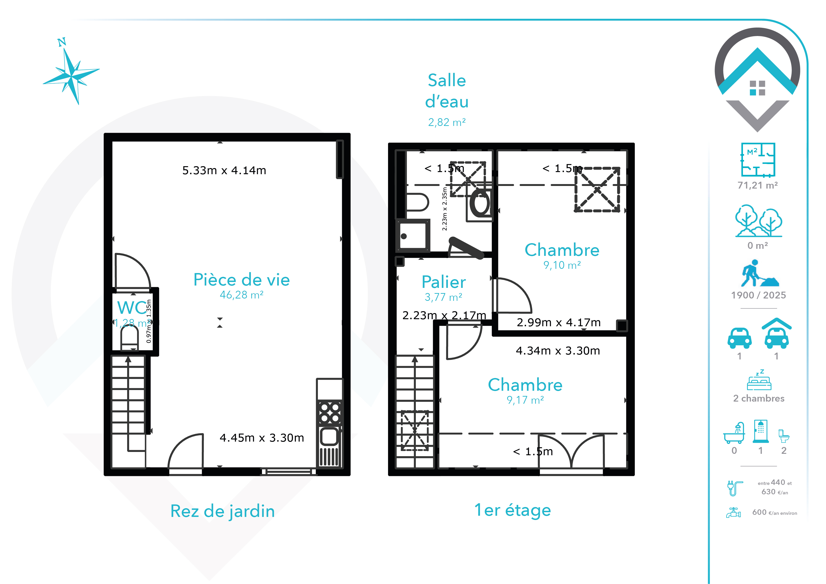 Dès l'entrée, vous serez séduit par une belle pièce de vie lumineuse de 46 m², comprenant une cuisine aménagée et entièrement équipée, parfaite pour recevoir et partager des moments conviviaux. Un WC indépendant complète le rez-de-chaussée.