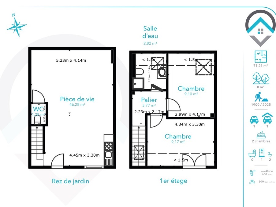 Côté confort, le logement bénéficie d'un chauffage par pompe à chaleur avec climatisation réversible, garantissant des performances énergétiques optimales avec un excellent classement énergétique (double A).