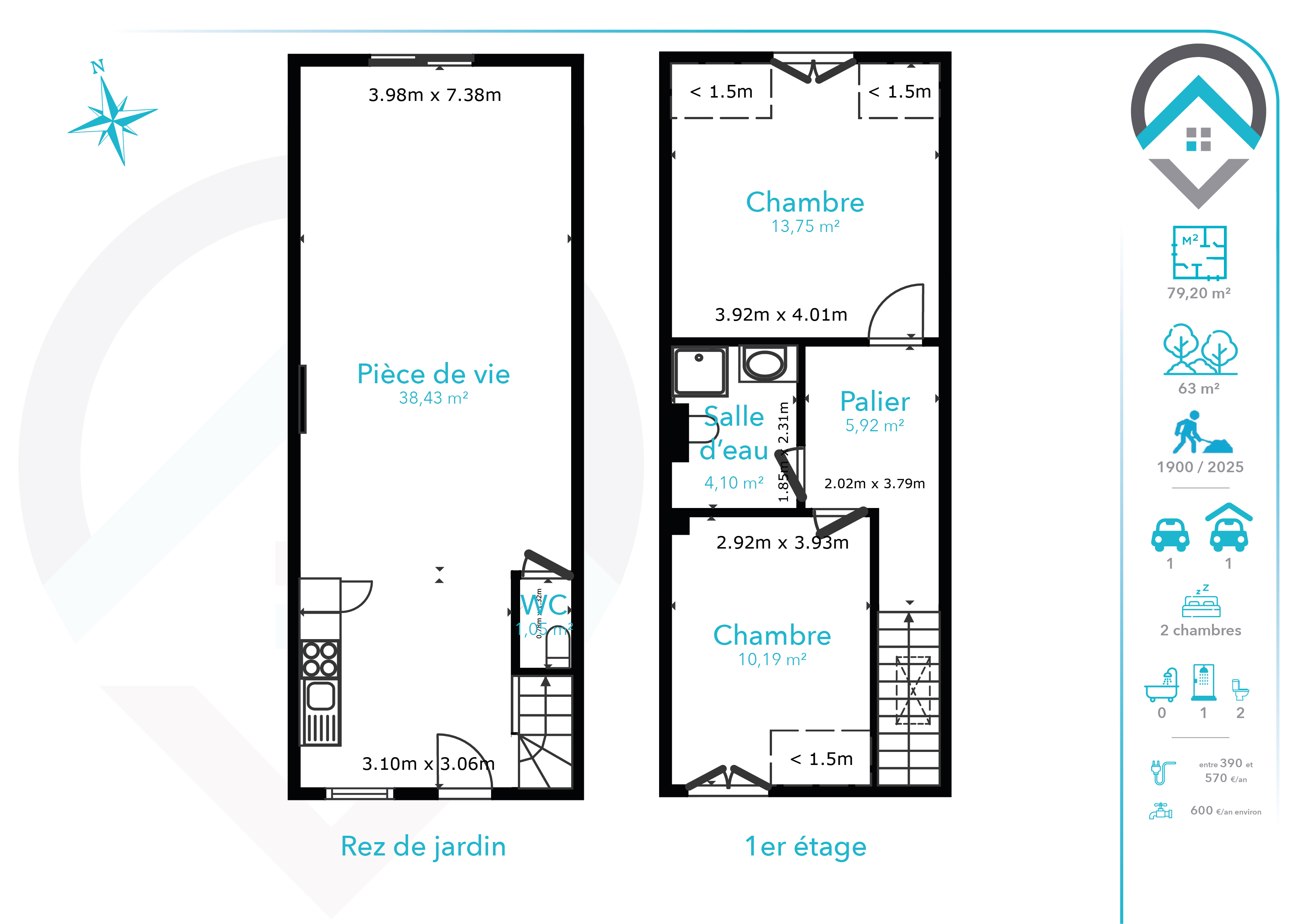 Dès l'entrée, vous serez séduit par une belle pièce de vie lumineuse de 40 m², comprenant une cuisine aménagée et entièrement équipée, parfaite pour recevoir et partager des moments conviviaux. Un WC indépendant complète le rez-de-jardin.