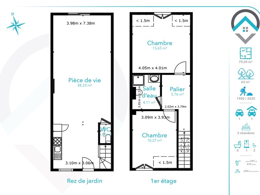 👉 Jardin de 63 m².