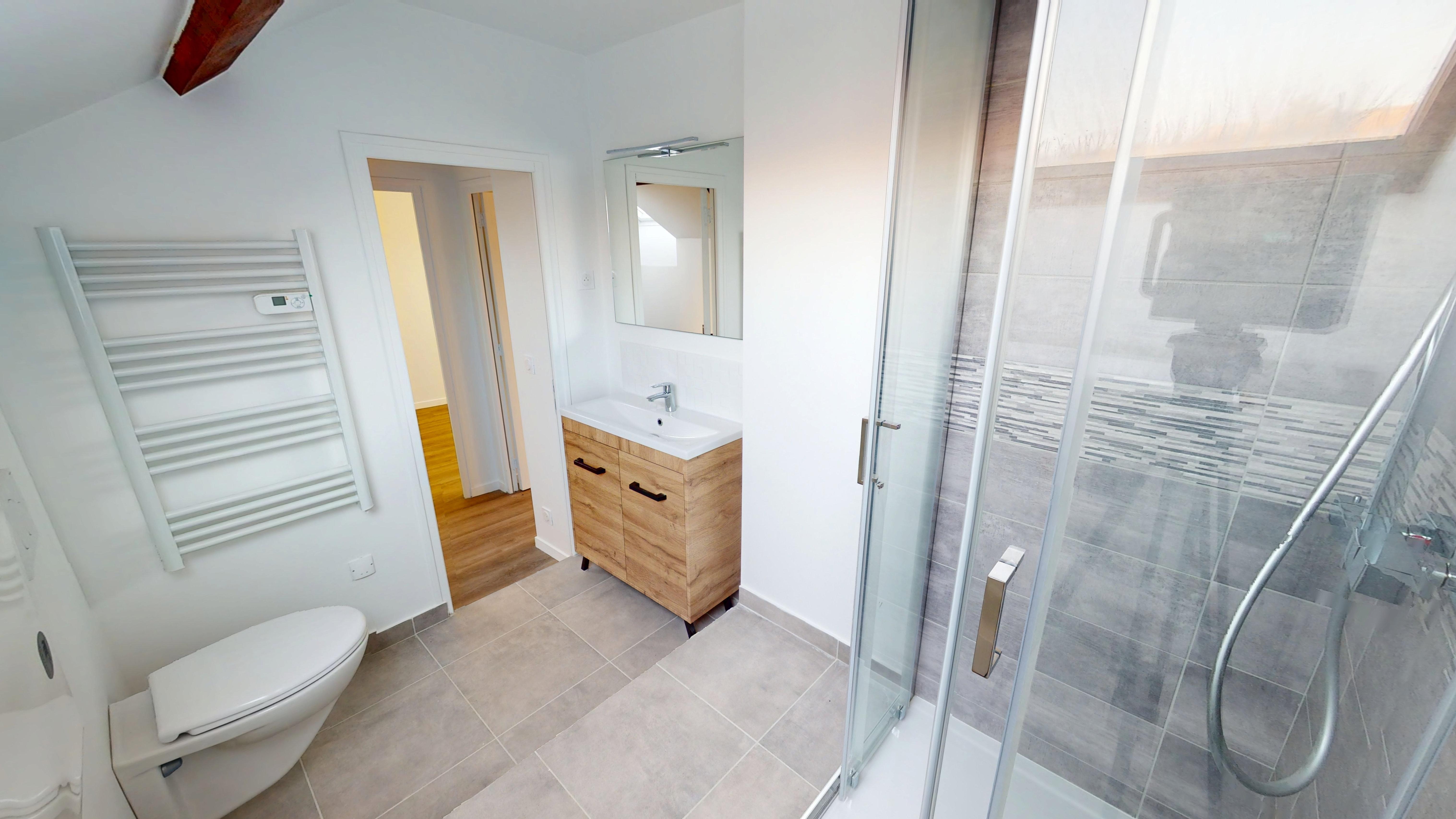 À l'étage, le palier dessert deux chambres confortables ainsi qu'une salle d'eau moderne avec WC, pensée pour le quotidien.