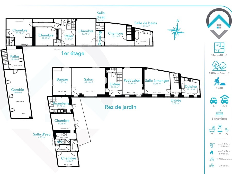 Demeure édifiée en 1730, cette maison se compose en son rez de jardin de deux entrée, d'un grand salon, d'une salle à manger, d'un bureau, d'un petit salon, d'une cuisine aménagée et équipée, d'un WC séparé, mais aussi de trois dépendances, deux petits studio avec chambres et sanitaires et une buanderie. À l'étage un grand palier dessert 4 chambres dont 3 suites, un dressing et un WC séparé. Le terrain est encore constructible sur une partie, un parcelle de 626 m² peut être détachée pour une construction indépendante. L'une des dépendance peut permettre une activité libérale avec une entrée indépendante sur la rue.