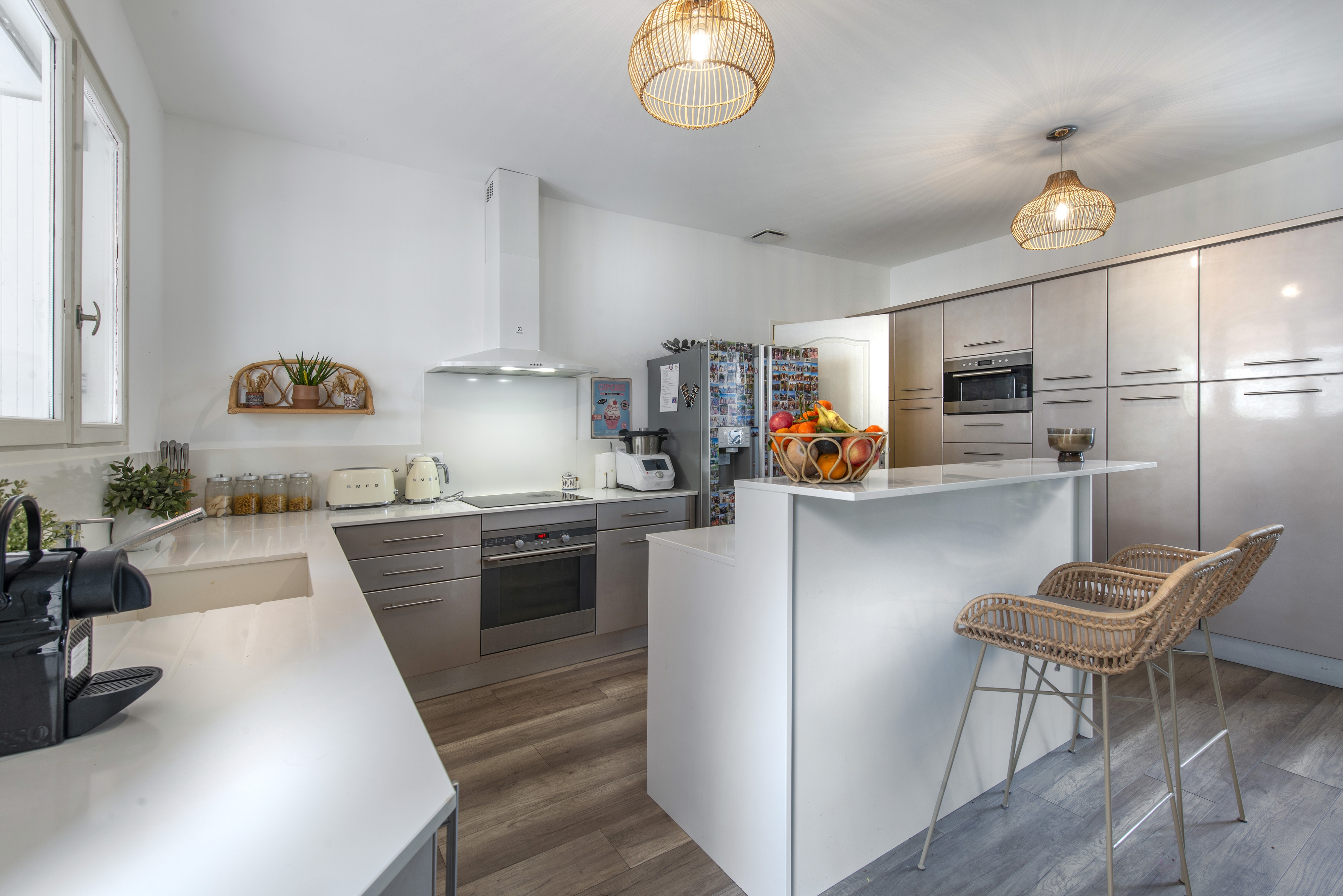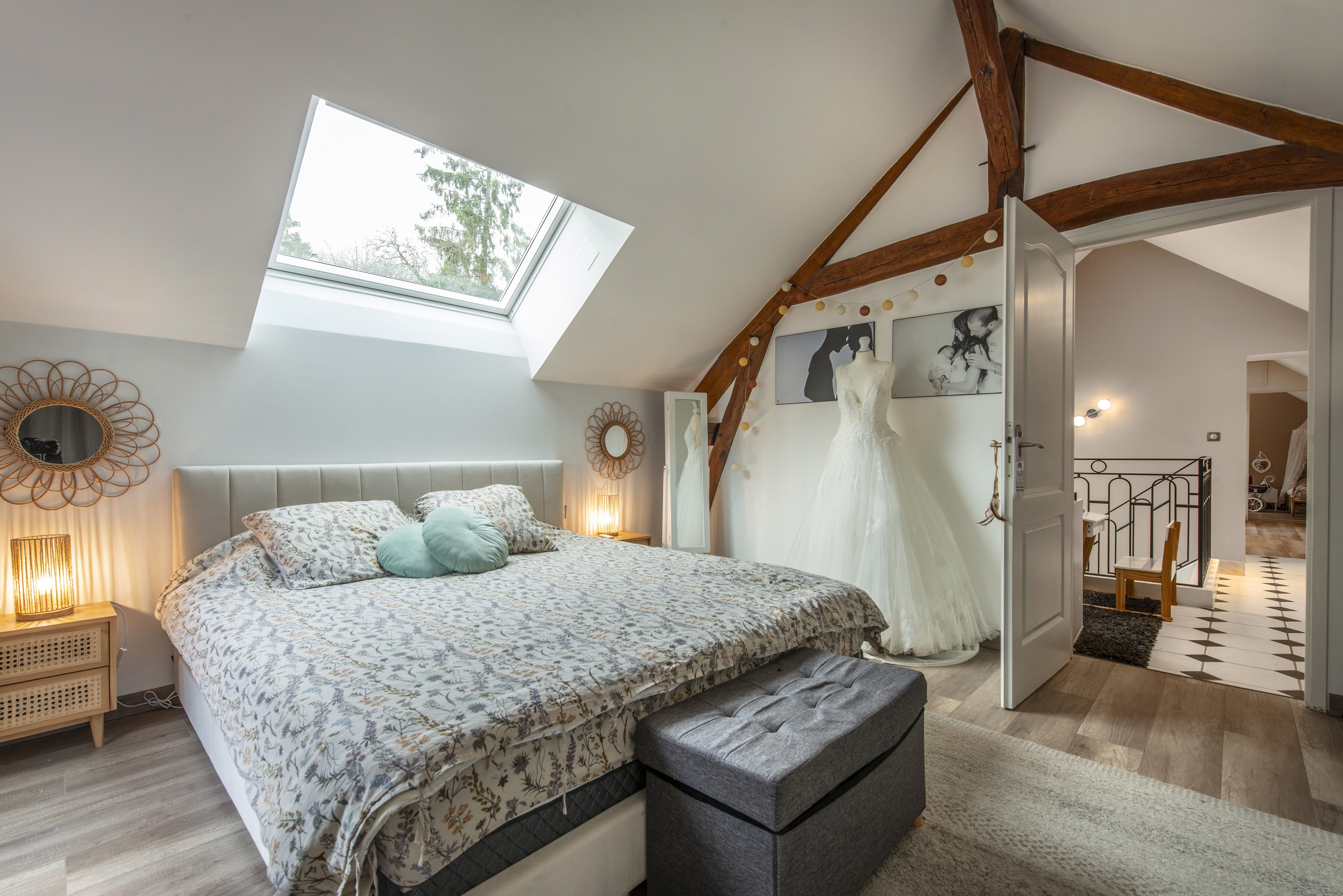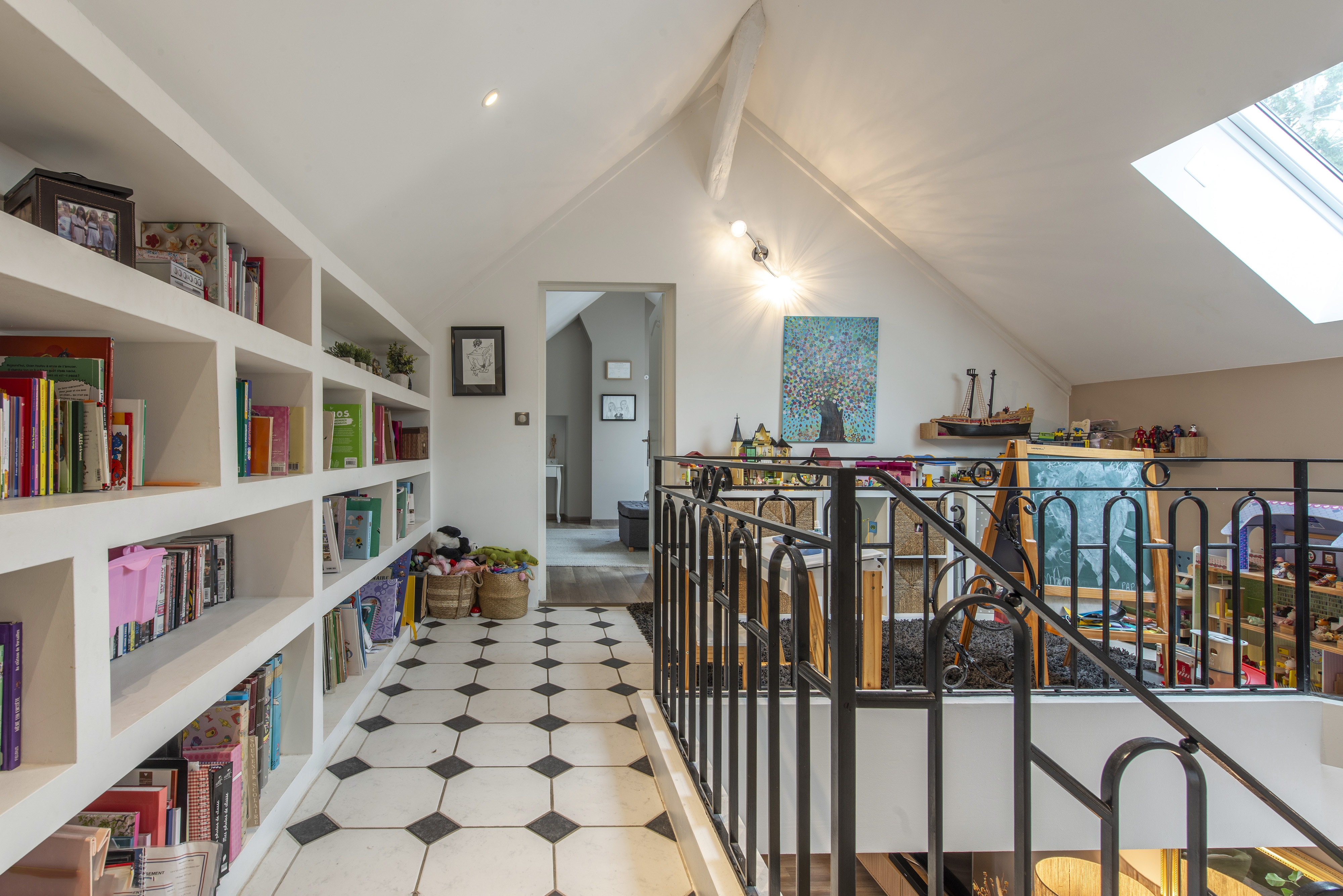 À l'étage, le palier dessert deux chambres d'enfants avec de nombreux rangements, une suite parentale bénéficiant d'une terrasse privative, ainsi qu'un second WC indépendant.