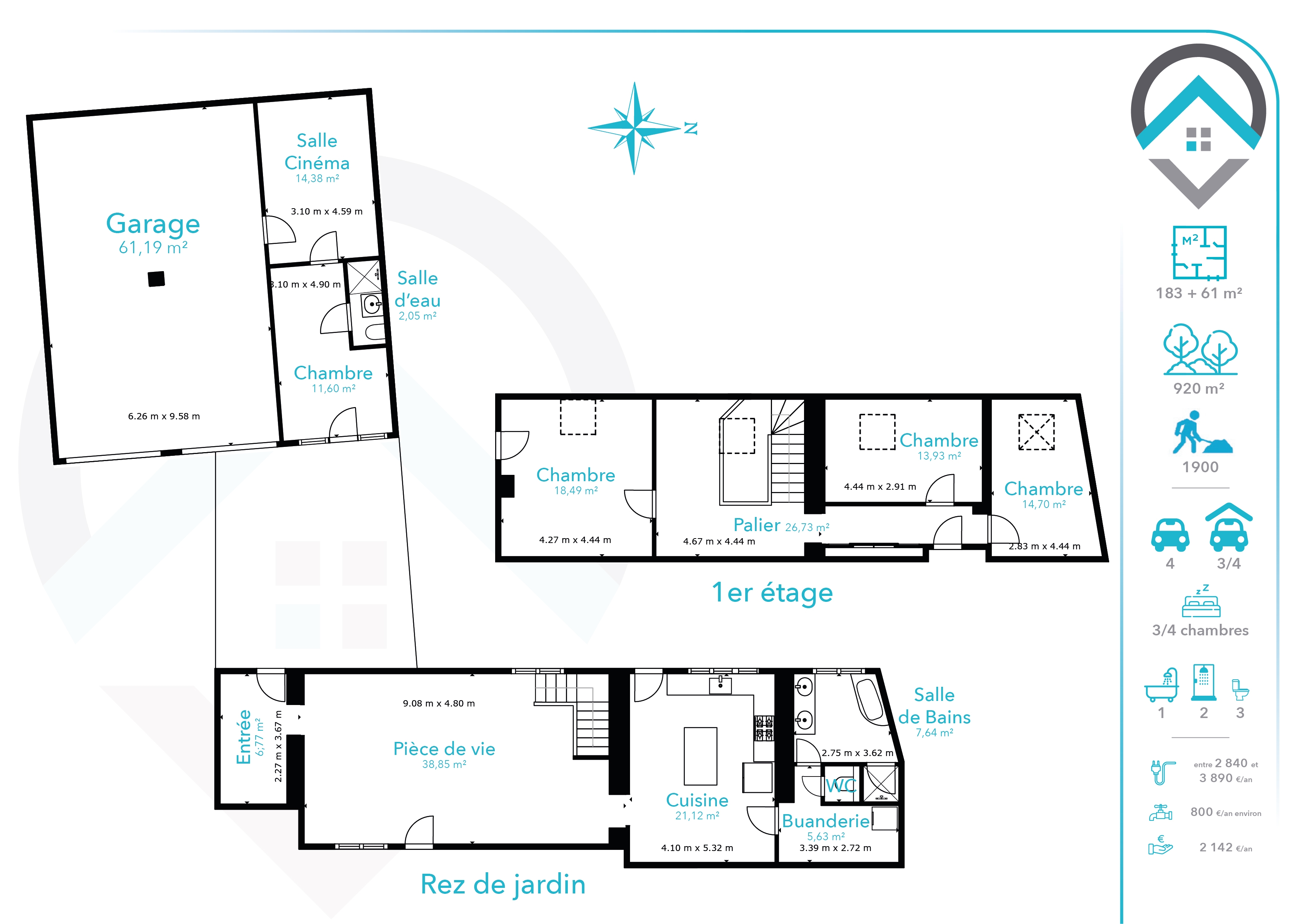 Édifiée sur une parcelle de 920 m² en paliers, la propriété offre une agréable terrasse surélevée ainsi que deux espaces jardin, propices à la détente et à la convivialité.