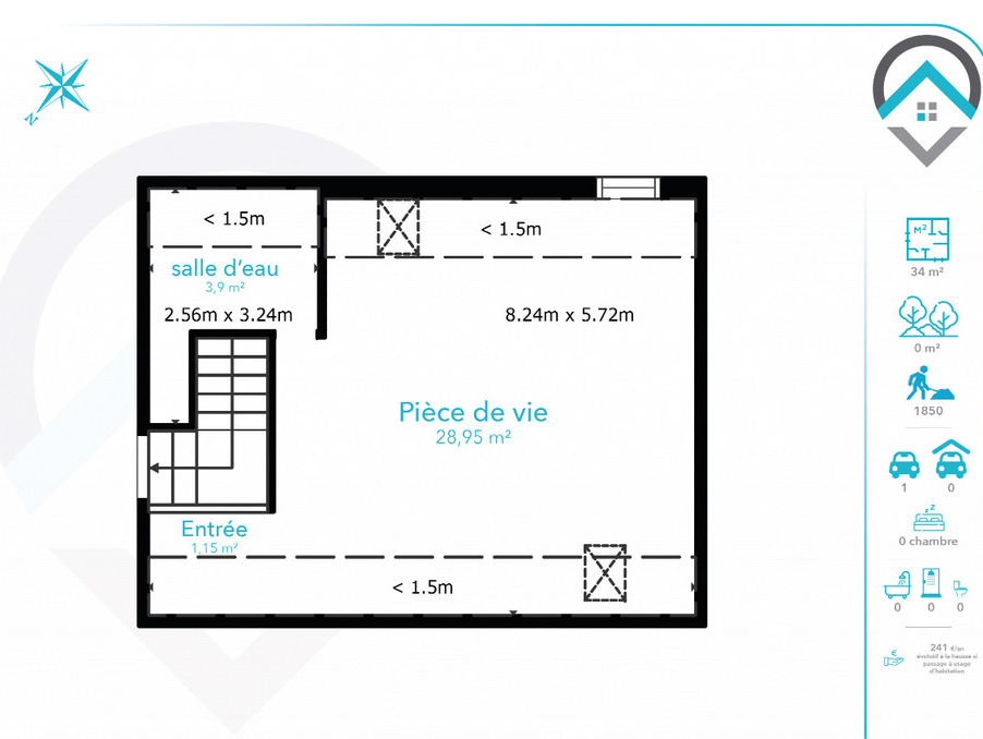 Venez découvrir cet appartement, à rénover entièrement, de 34 m² loi carrez et 43 m² au sol.